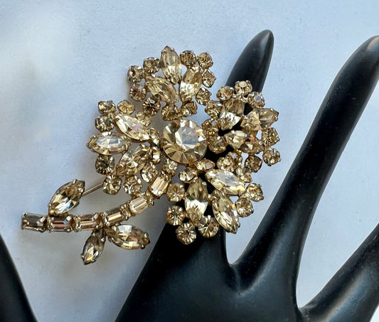 AMAZING 'JEWELS of ELEGANCE' by CANADIAN JEWELLER GUSTAV SHERMAN CHAMPAGNE SWAVOROSKI CRYSTAL FLORAL or 4 LEAF SHAMROCK PIN BROOCH