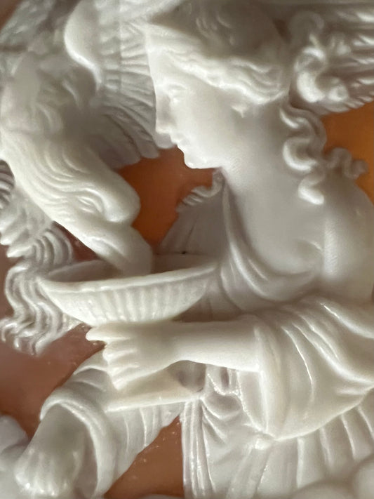 HEBE FEEDS ZEUS's EAGLE SIGNED ITALIAN LARGE SHELL CARVED CAMEO