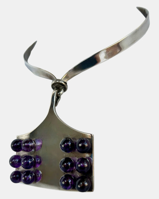 EARLY MODERNIST TANE REMARKABLE STERLING SILVER NECK RING AMETHYST BEAD GRAPHIC SILVERSMITHING MASTERPIECE NECKLACE