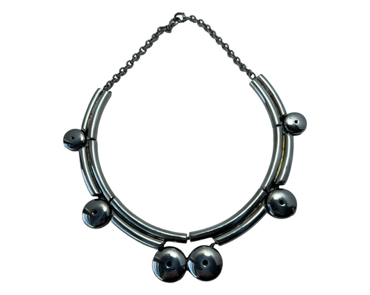 EARLY MODERNIST TANE STERLING SILVER DISC/TUBE CHAIN UNIQUE STATEMENT NECKLACE