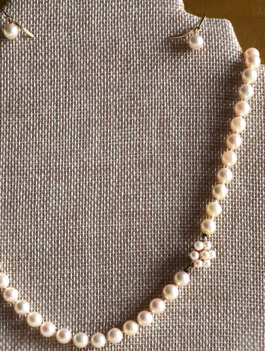 GORGEOUS REAL PEARL NECKLACE & DROP EARRINGS W/ 14KT GOLD FINDINGS