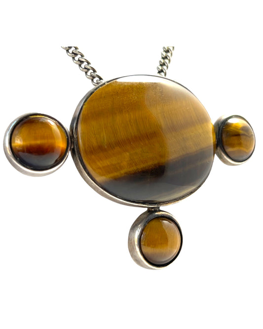 SUBLIME EARLY MODERNIST TANE TIGER EYE & STERLING SILVER NECKLACE & EARRINGS -SOLD SEPARATELY