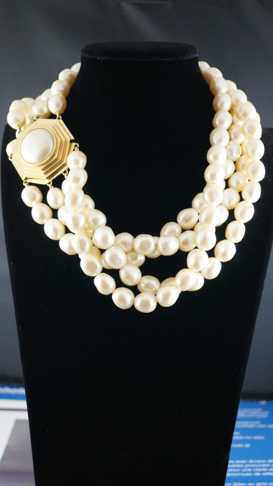 YSL DESIGNER YVES SAINT LAURENT 4 STRAND RUNWAY STYLE COSTUME PEARL NECKLACE