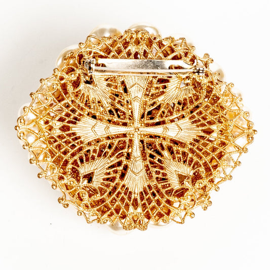 FANTASTIC CHAMPAGNE BAROQUE PEARL & RHINESTONE BROOCH | MIRIAM HASKELL STYLE
