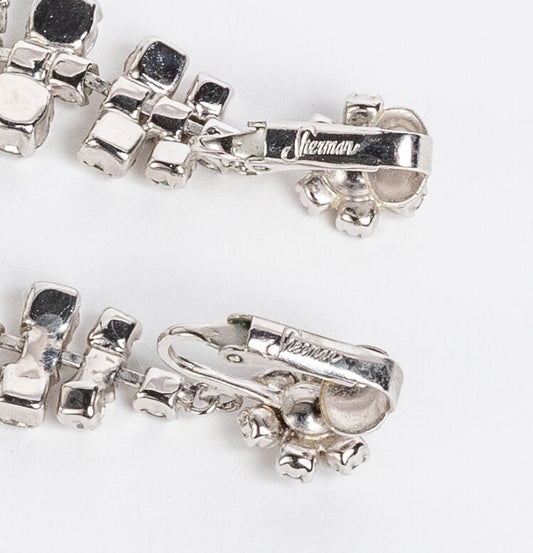 SIGNED SHERMAN CLEAR CRYSTAL RHINESTONE DANGLE CLIP ON CHANDELIER EARRINGS