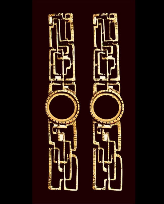 RARE PAIR OF VINTAGE ATOMIC BRUTALIST DOOR ESCUTCHEONS GOLDTONE likely WEISER LOCKS