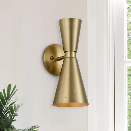 UP/DOWN DOUBLE CONE BOW TIE STYLE VINTAGE BRASS WALL SCONCE