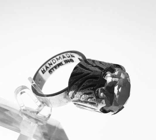 HANDMADE STERLING SILVER & ROCK CRYSTAL MODERNIST RING, SIZE?