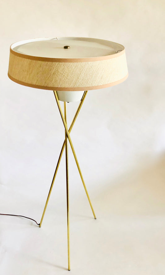 GERALD THURSTON for LIGHTOLIER TRIPOD BASE FLOOR LAMP w/ NEW CUSTOM LAMPSHADE