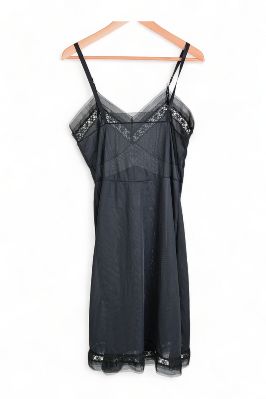 PINUP LINGERIE VINTAGE BLACK LACE FRONT SLIP