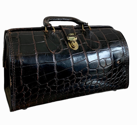 VINTAGE EMBOSSED LEATHER COWHIDE UPJOHN DOCTORS BAG PURSE SMALL CASE