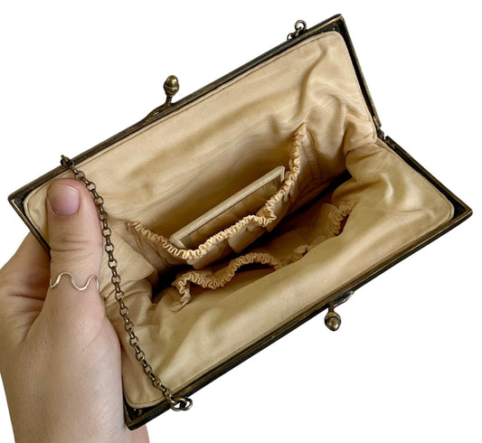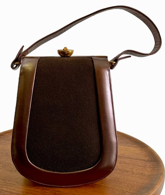 VINTAGE BRONZE LEATHER & WOOL 'ORIGINAL DUETTE' by MAYCRAFT of CALIFORNIA 1940'S HANDBAG PURSE