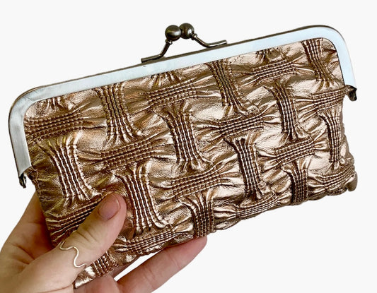 PLEATED LEATHER NICOLE MILLER GOLDTONE CROSSHATCH COIN PURSE