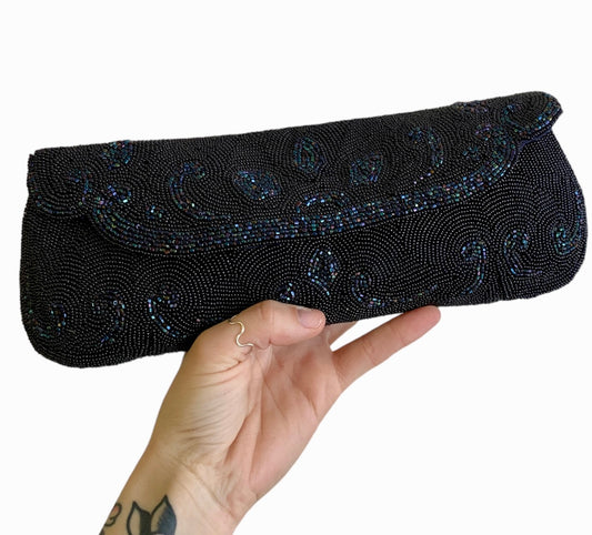 HANDMADE BLACK BEADED & SEQUIN CLUTCH