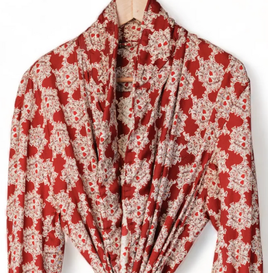 RARE FABULOUS SEXY UNISEX 1940S SMOKING JACKET SLINKY RAYON DRESSING GOWN ROBE PLAYING CARDS/POKER MOTIF