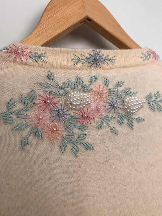 SO SOFT 1950s CASHMERE BEADED SWEATER w/ SWEET PEARL BUTTONS