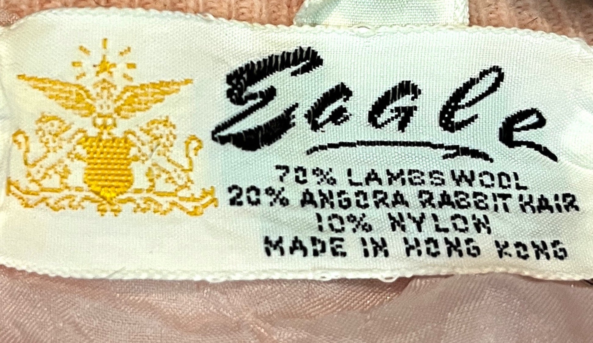 1950s Hong Kong BEADED WOOL/ ANGORA CARDIGAN SWEATER FIFTIES PINK!
