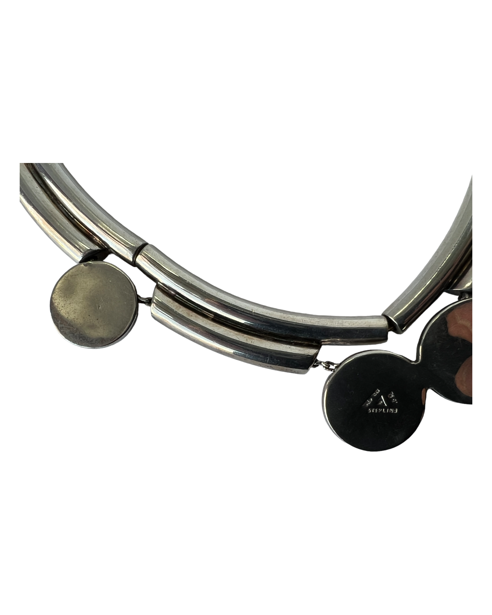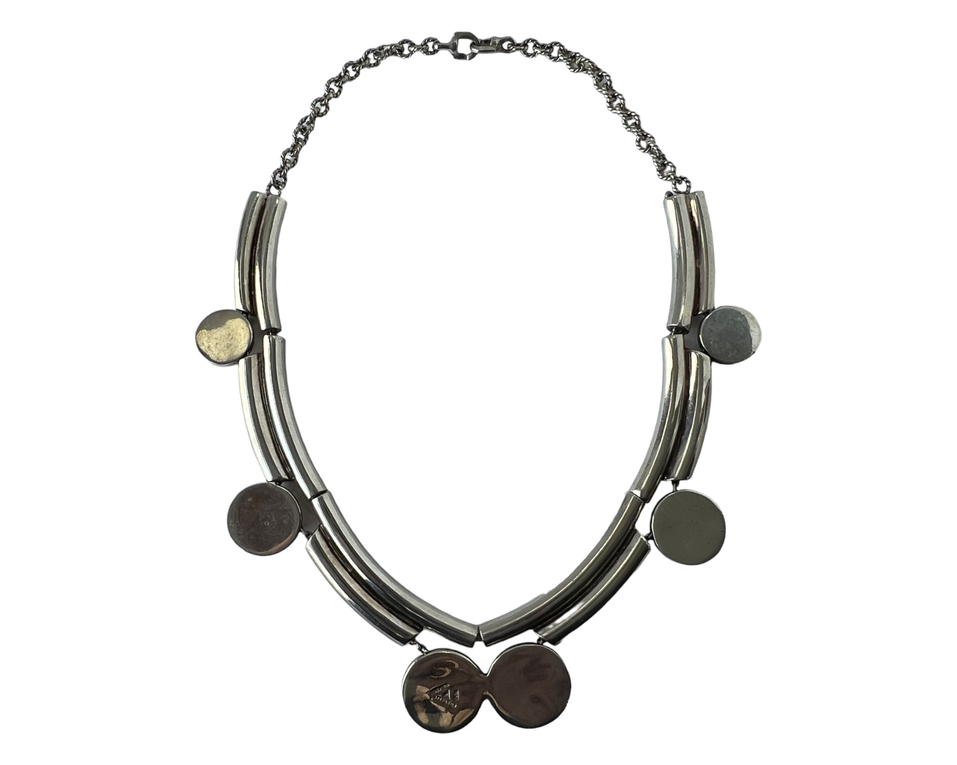 EARLY MODERNIST TANE STERLING SILVER DISC/TUBE CHAIN UNIQUE STATEMENT NECKLACE