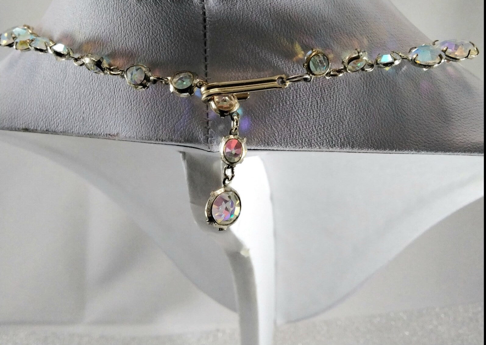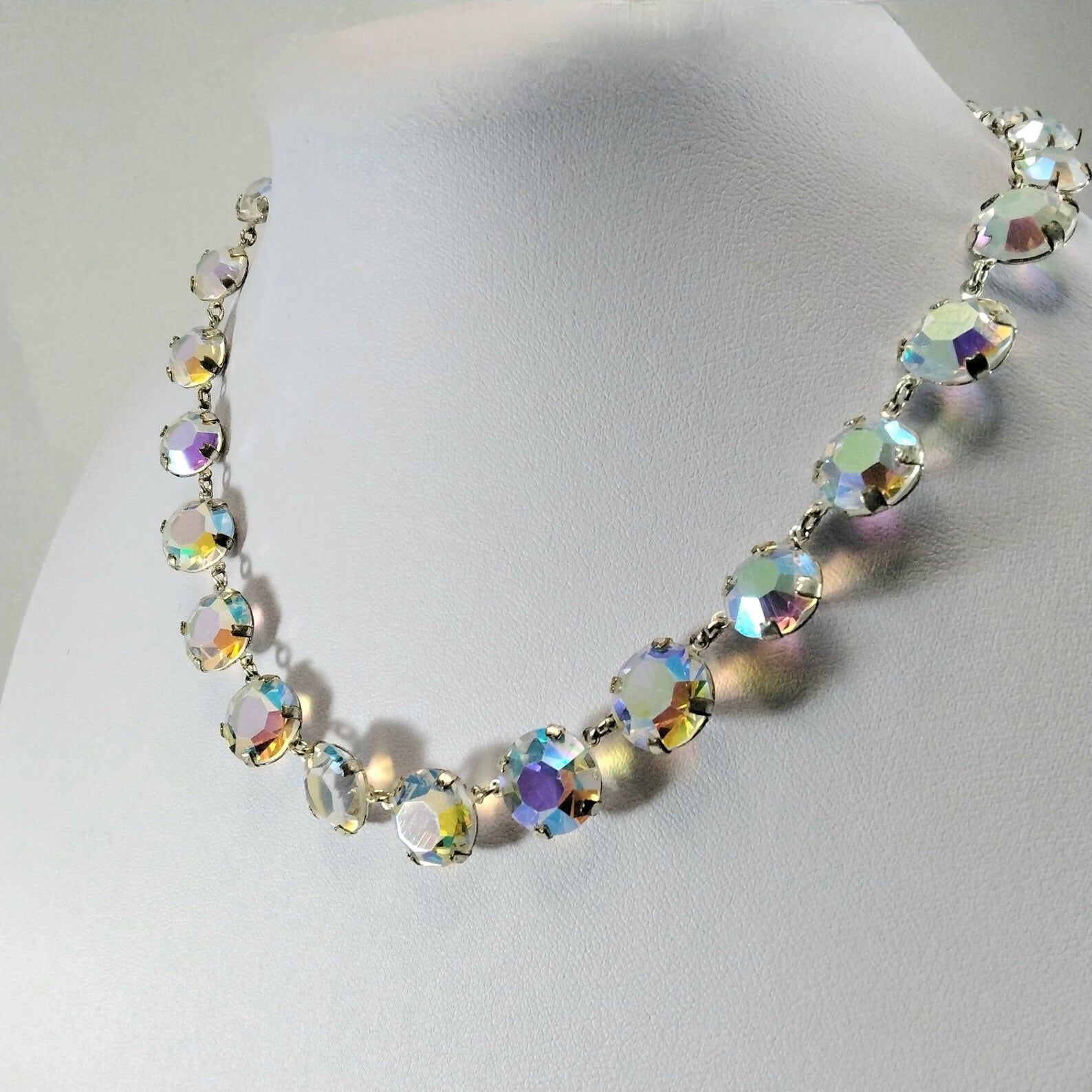 VINTAGE VERY SPARKLY GRADUATED OPEN BACK FESTIVE CZECH CRYSTAL AURORA BOREALIS RIVIERE CHOKER NECKLACE