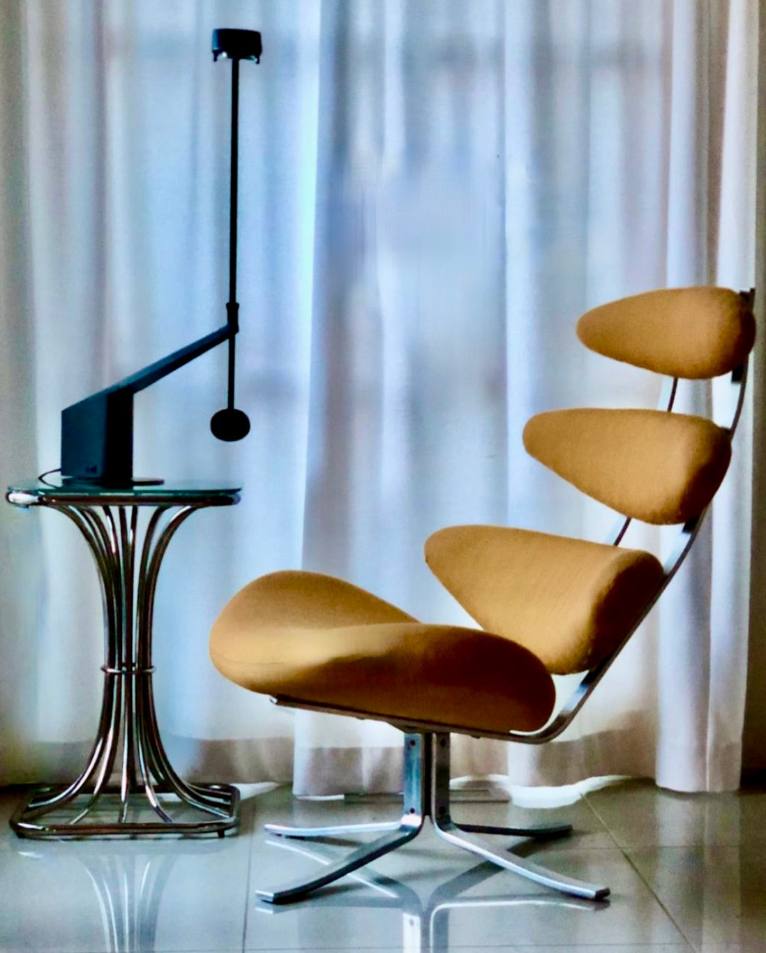 UNIQUE CHROME BASE STREAMLINE DESIGN SIDE TABLE or PLINTH w/ FRESH GLASS TOP