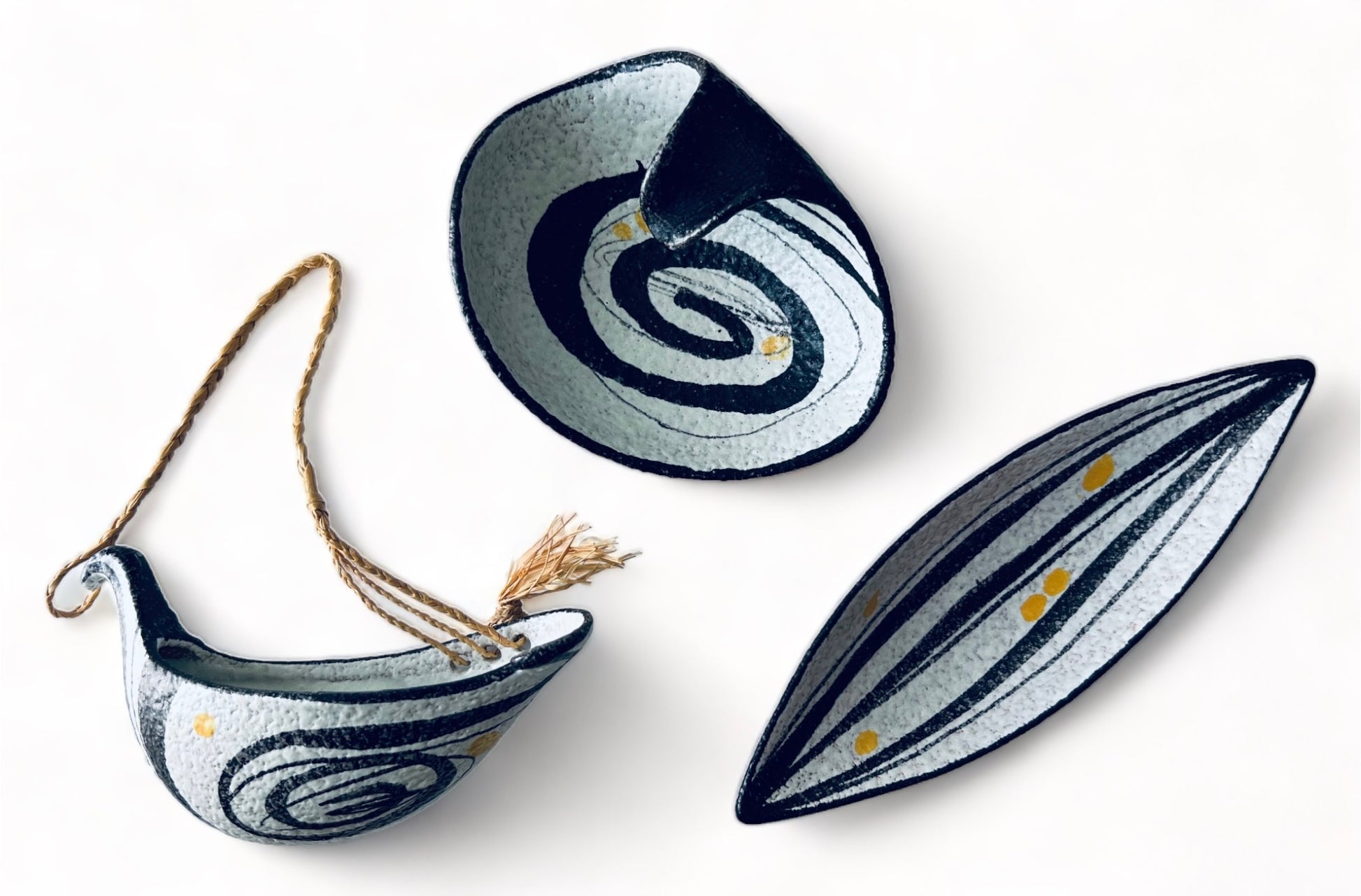 VINTAGE MID CENTURY WEST GERMAN RUSCHA 'DOMINO' CERAMIC DISH DECOR DESIGNED BY CILLI WÖRSDÖRFER FORM #417/2 1950s MODERNIST