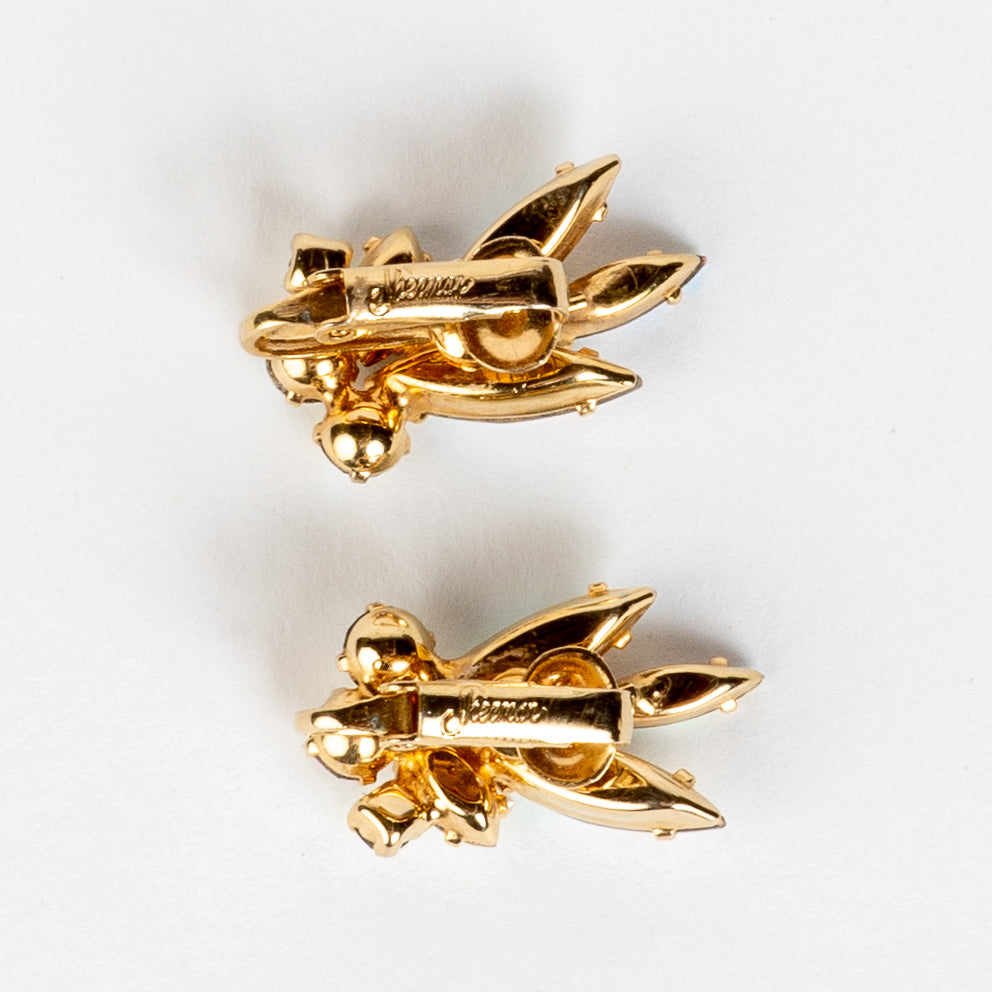 Trying to complete a Sherman set or add to your collection? We got you. Very pretty, like new condition, signed clip back Sherman earrings featuring shimmering aurora borealis colored Swarovski crystals with a shiny heavy gold plate finished back.