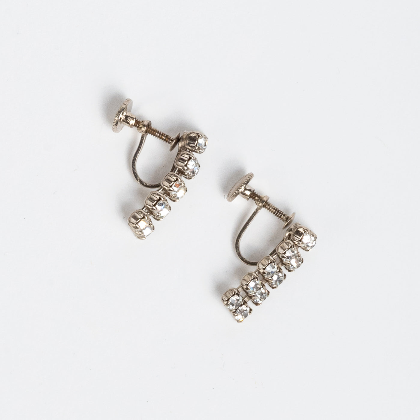 SIGNED SHERMAN CLEAR CRYSTAL RHINESTONE DANGLE SCREW BACK CHANDELIER EARRINGS