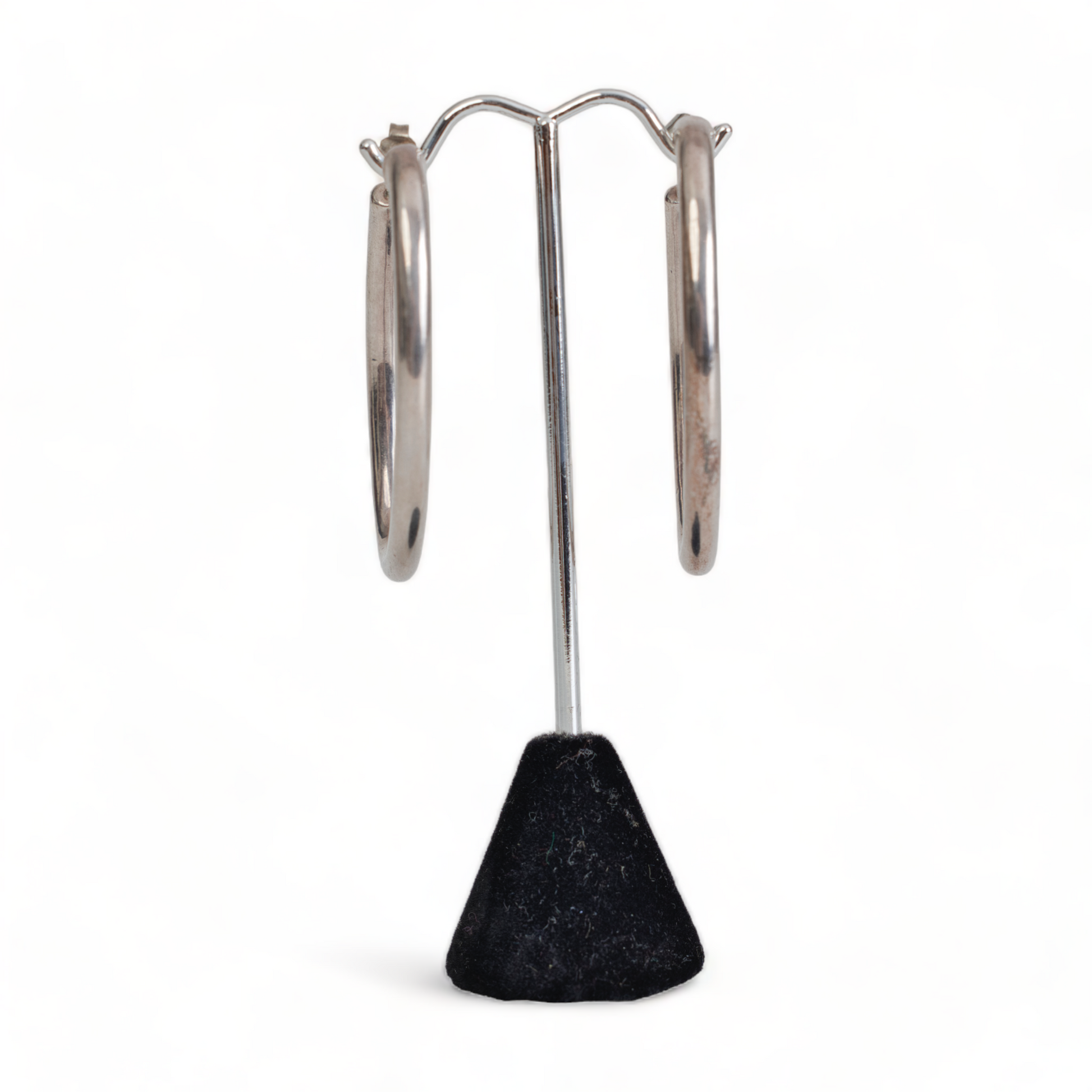 VINTAGE HOLLOWWARE UNIQUE OVAL HOOP STERLING SILVER EARRINGS PIERCED