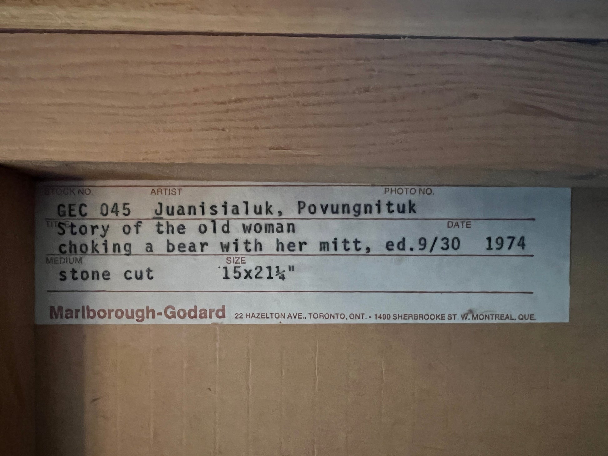 JUANISIALUK IRQUMIA STONECUT 15" X 21.25