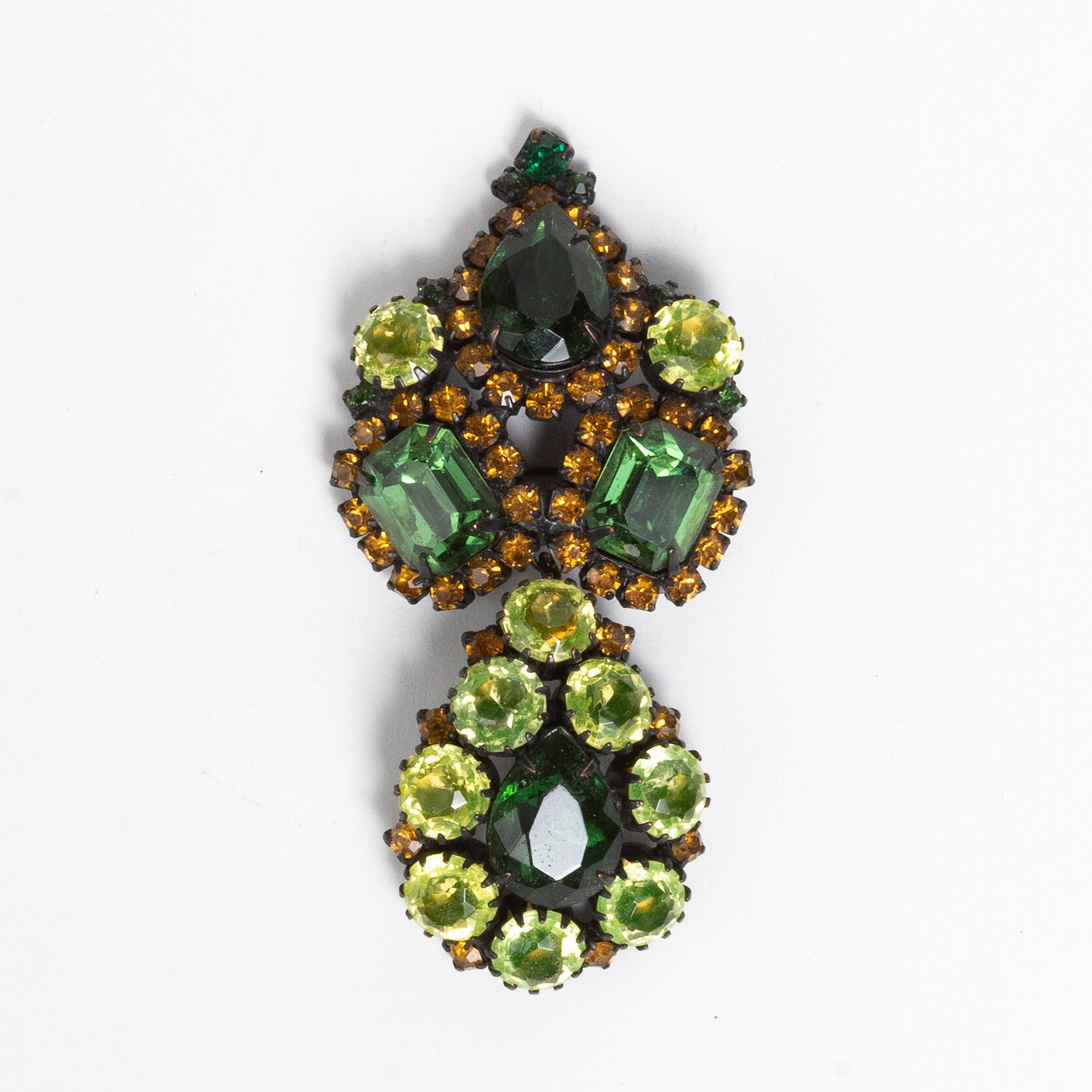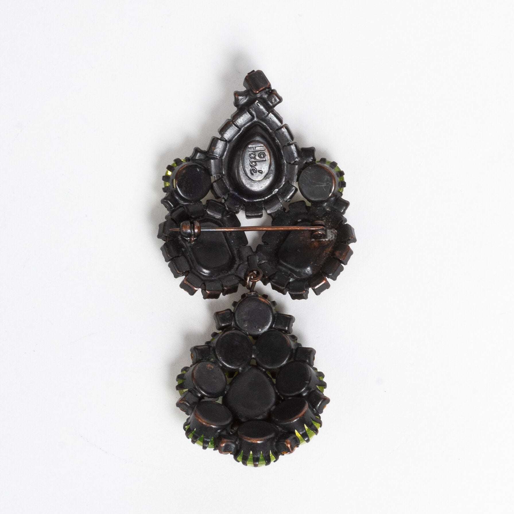 Hobé et Cie was founded by Jacques Hobé in France in 1887. While he was trained as a master goldsmith, his business focused primarily on finely crafted sterling silver jewelry. William Hobé, his son, moved to the United States around 1920 bringing his family’s acuity for producing high quality jewelry with him. He founded the Hobé Button Co. first and then a costume jewelry business called Hobé Cie Ltd.