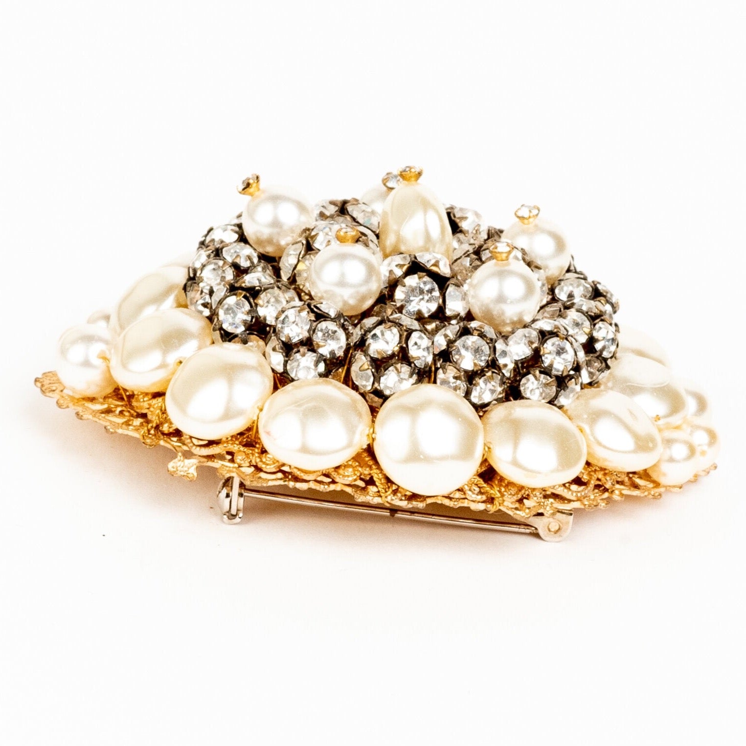 FANTASTIC CHAMPAGNE BAROQUE PEARL & RHINESTONE BROOCH | MIRIAM HASKELL STYLE