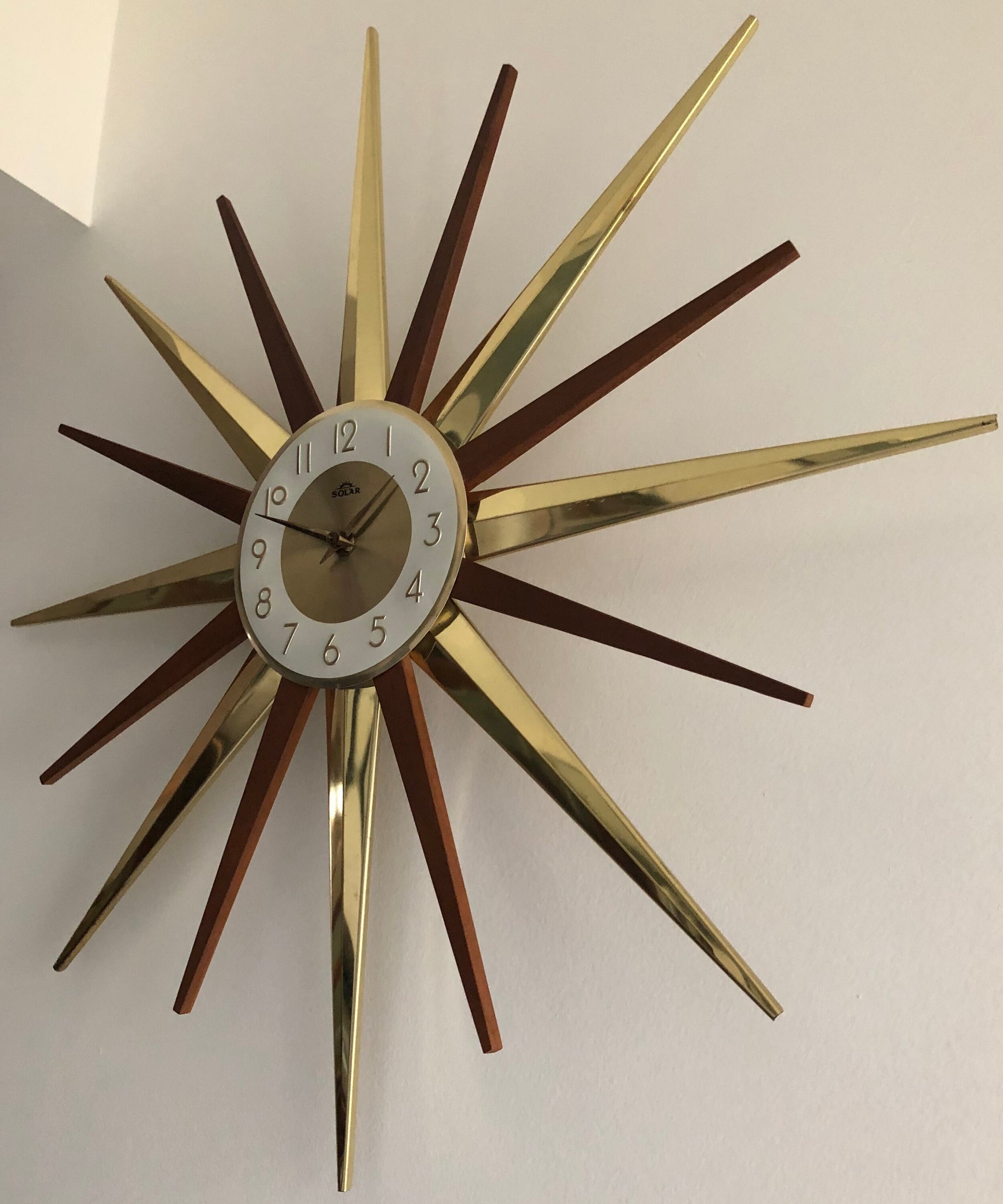 FANTASTIC TEAK & BRASS STARBURST | SUNBURST WALL CLOCK