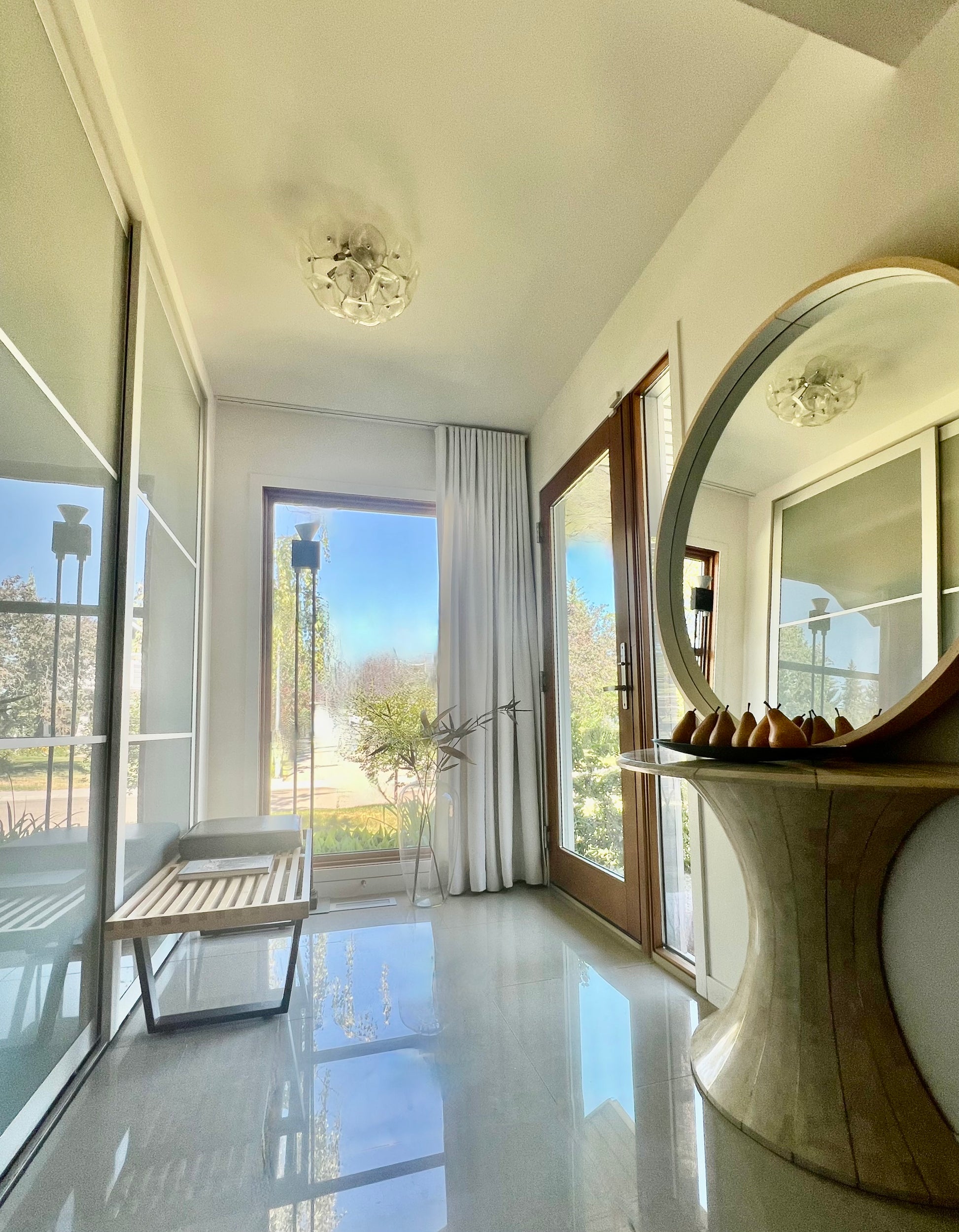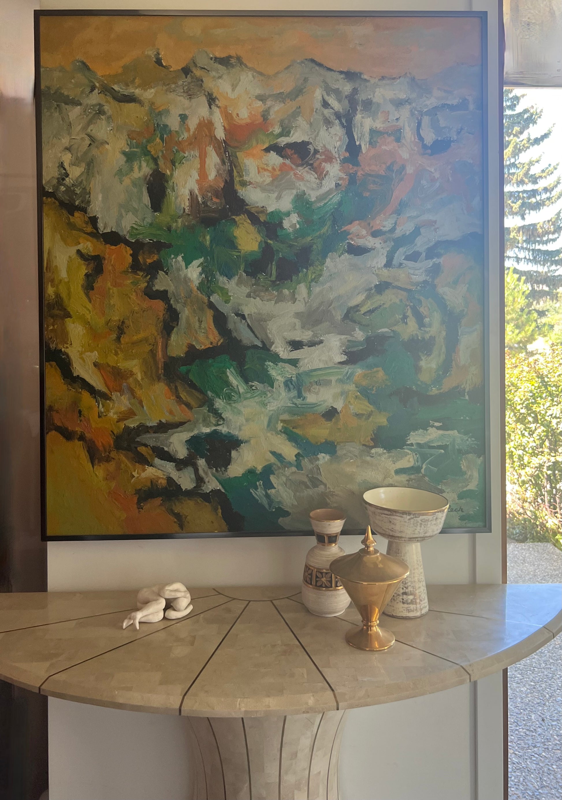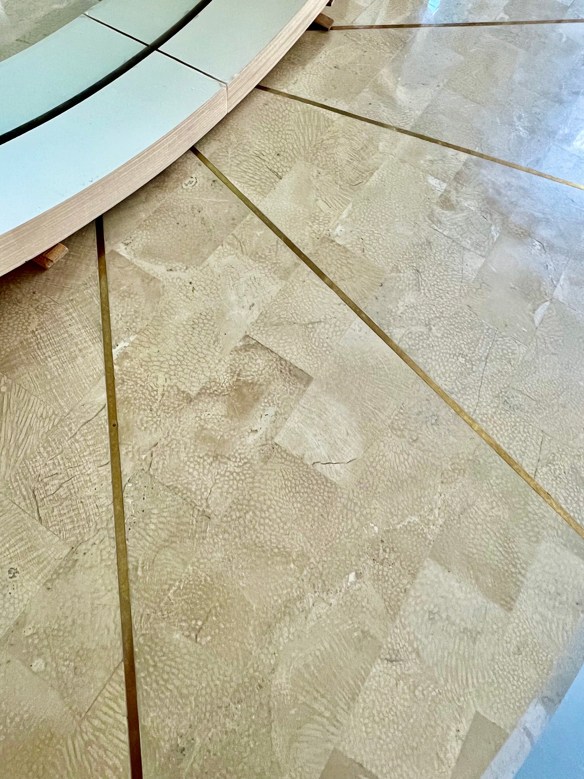 FUN CURVY CONSOLE TABLE ENTRYWAY WITH INLAID BRASS DETAILING