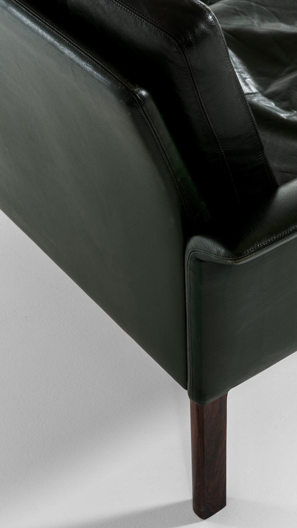 HANS OLSEN BLACK LEATHER / DOWN CUSHIONS 3 SEATER SOFA COUCH #500 SET