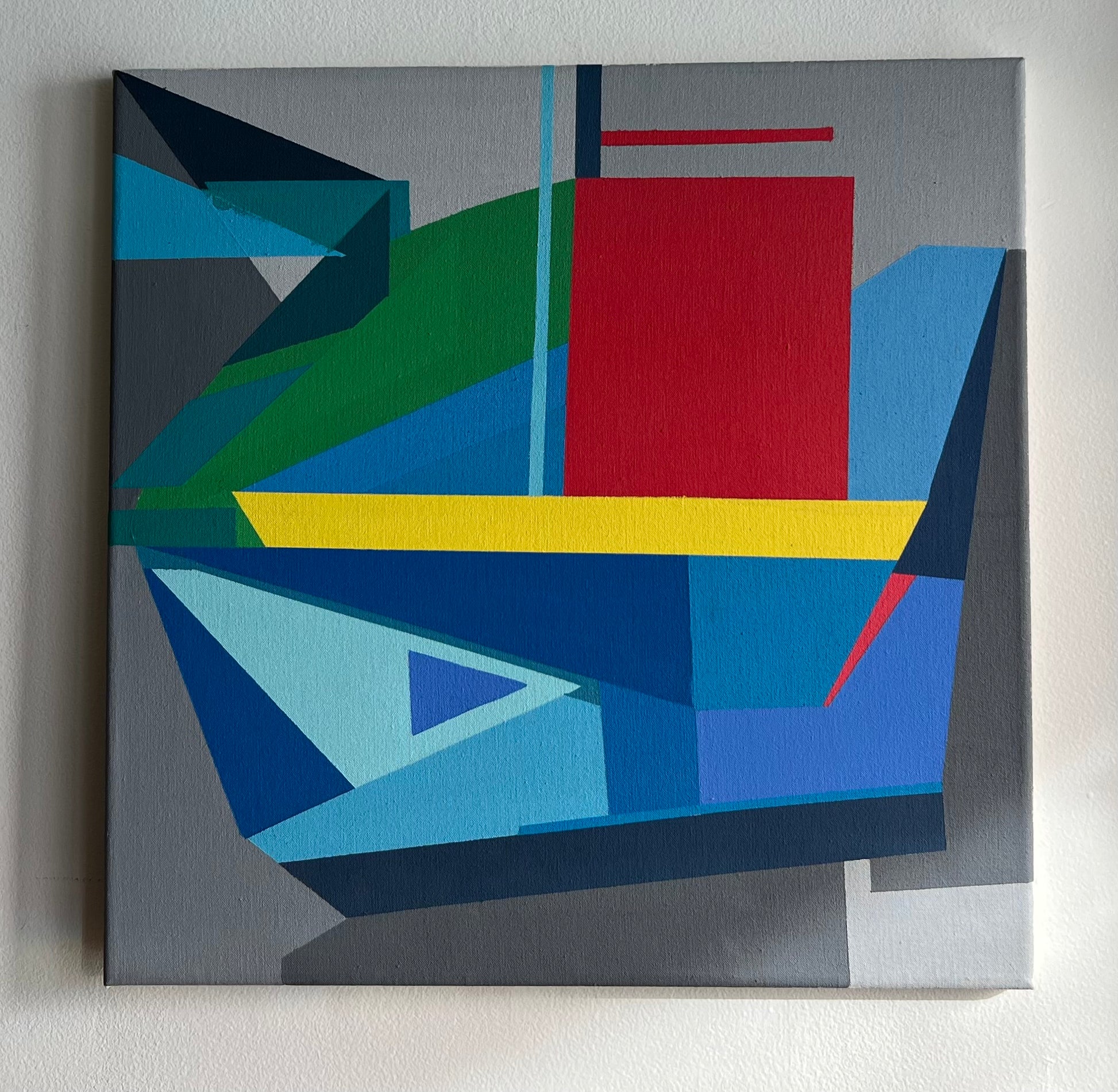 HARD EDGE GEOMETRIC ABSTRACT PAINTING on STRETCHED CANVAS RAW EDGE