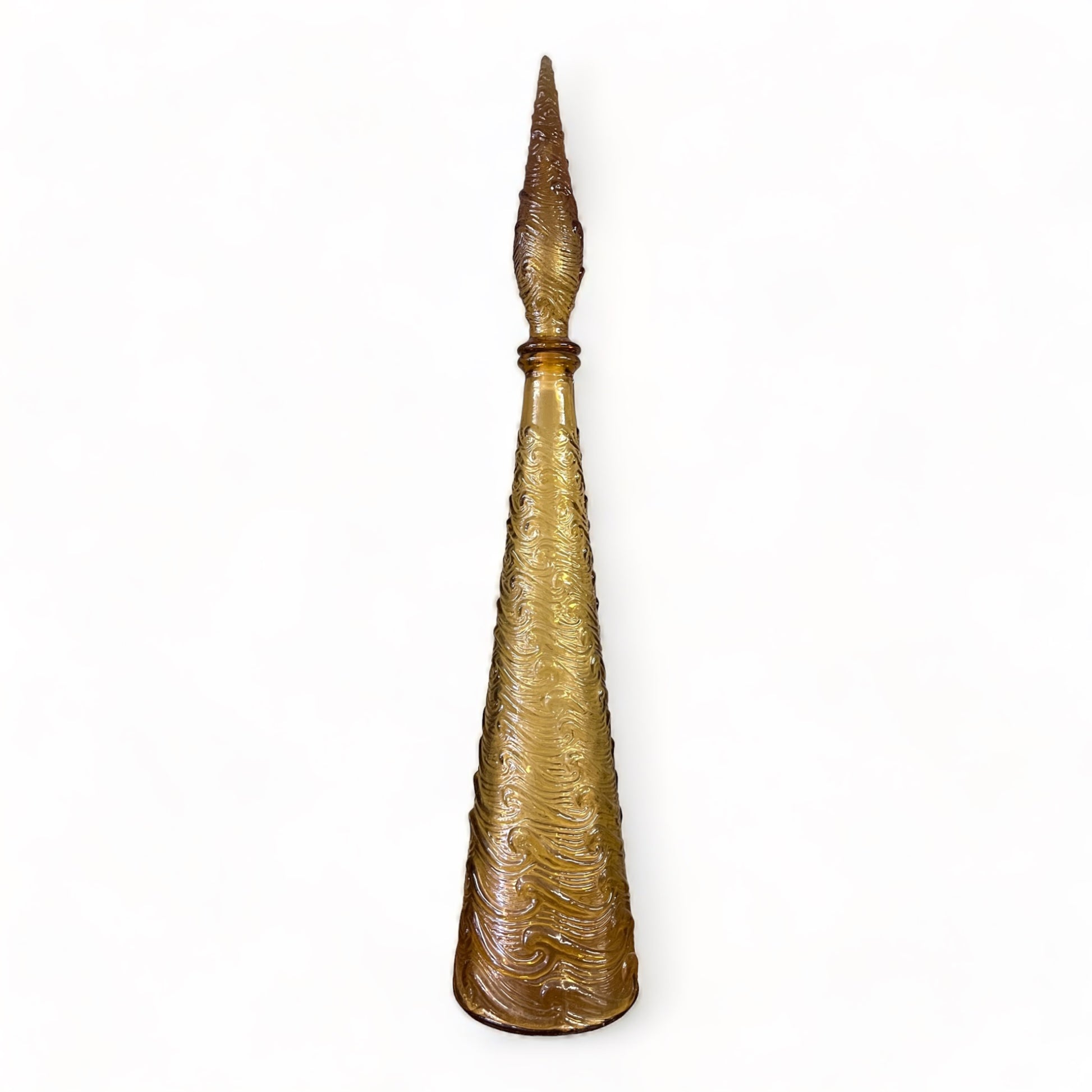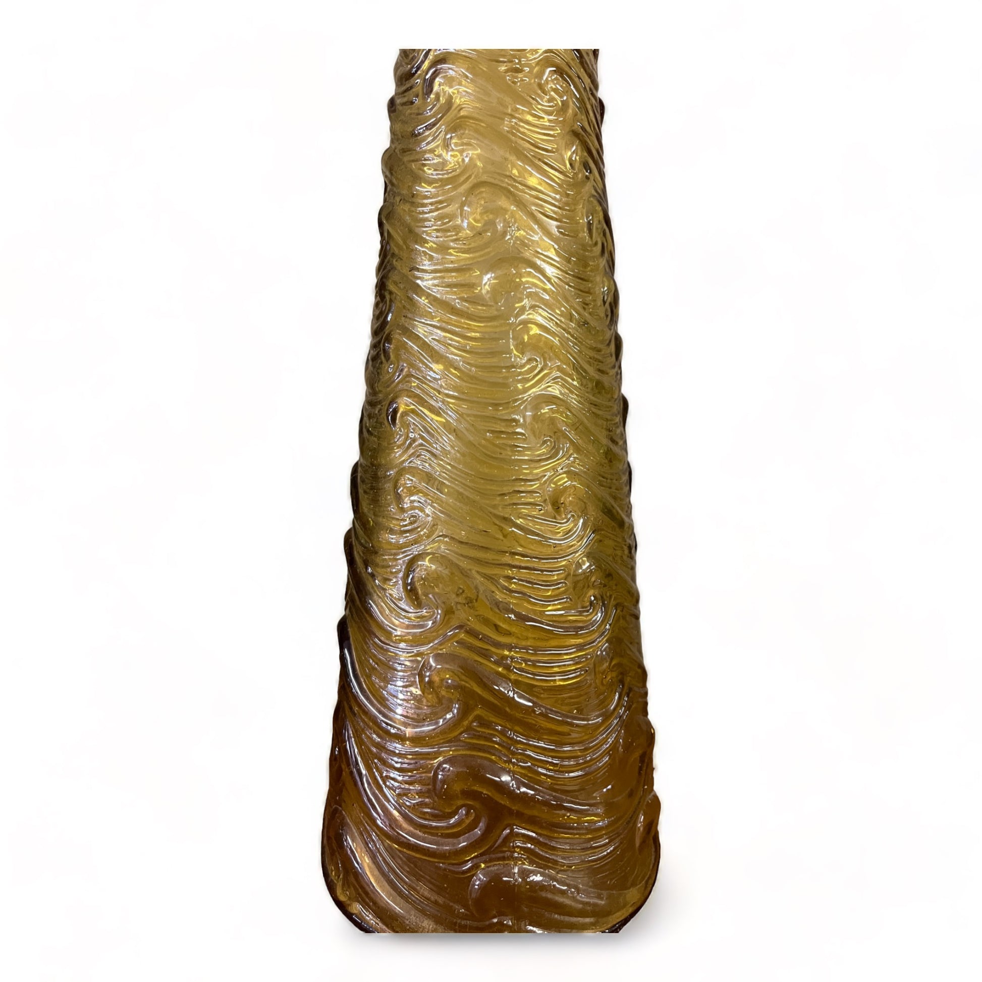ITALIAN EMPOLI AMBER GLASS WAVES GENIE BOTTLE w/ STOPPER