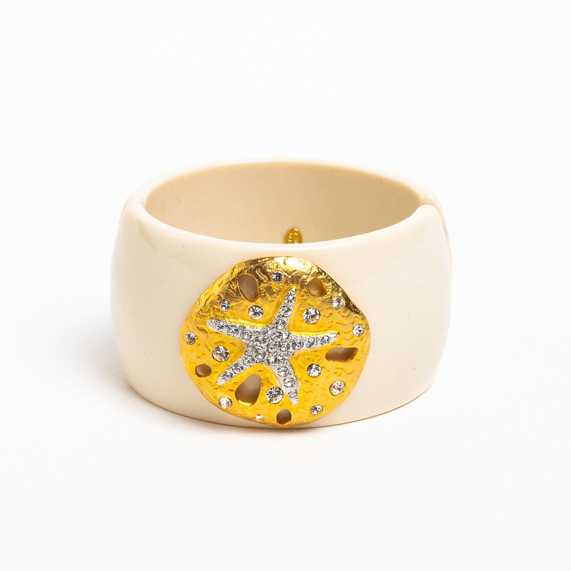 Signed Kenneth Lane (copyright) / KJL/ KENNETH J. LANE/ GLAM CLAMPER BRACELET STARFISH /SAND DOLLAR THEME CRUISEWEAR...and GOLDEN ACCENTS