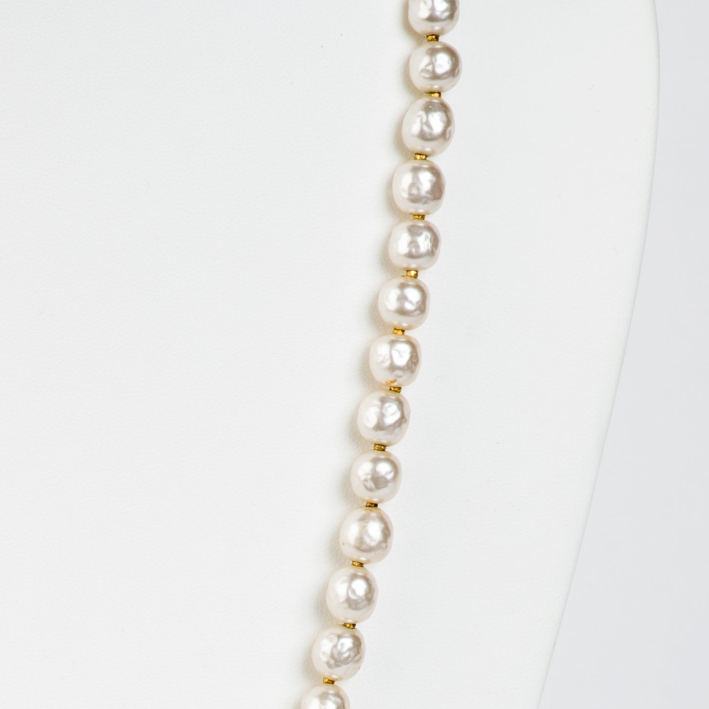 Dimensions: 27½ "L x baroque costume pearls are approx. 5/16" long