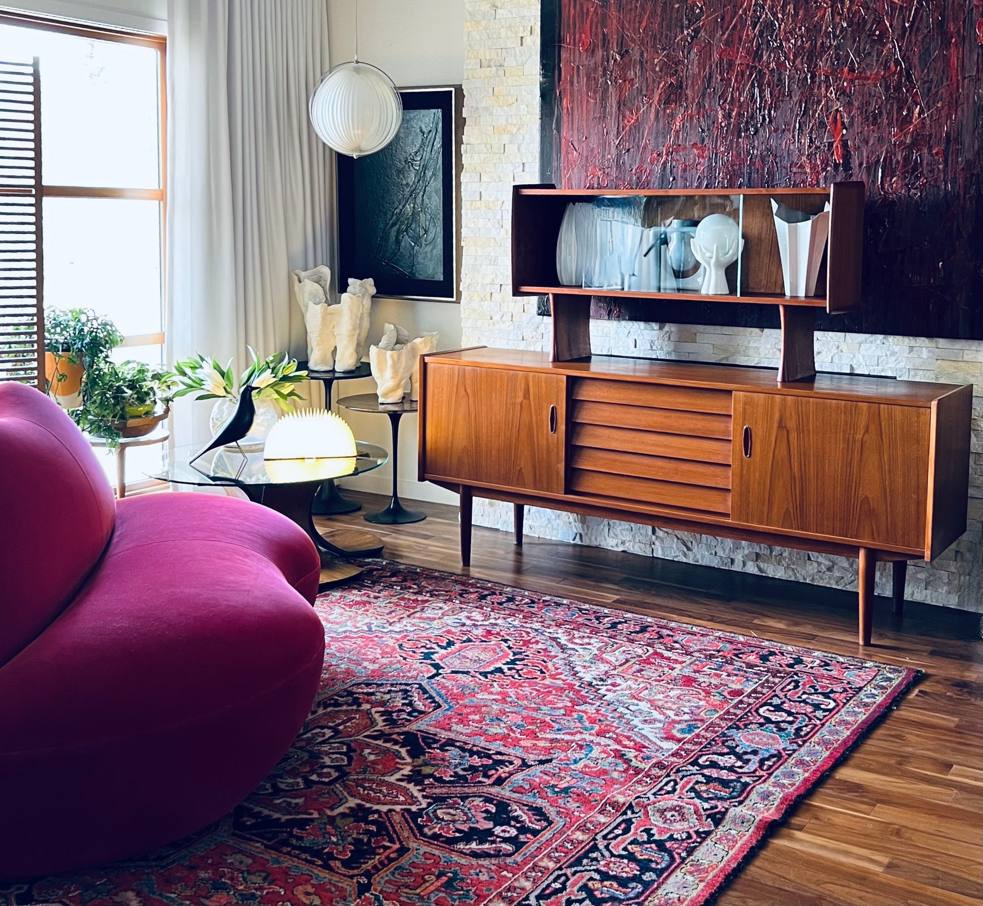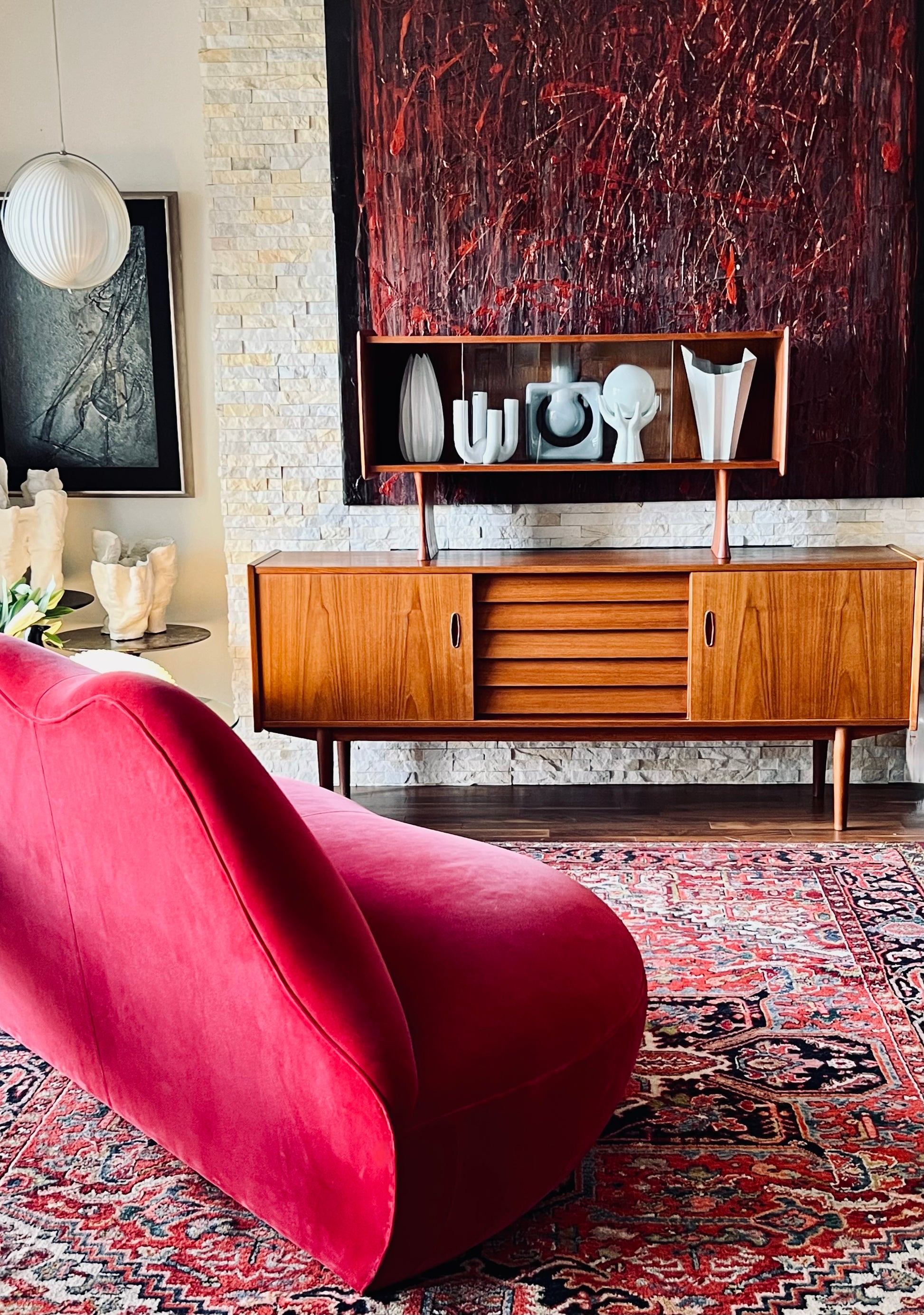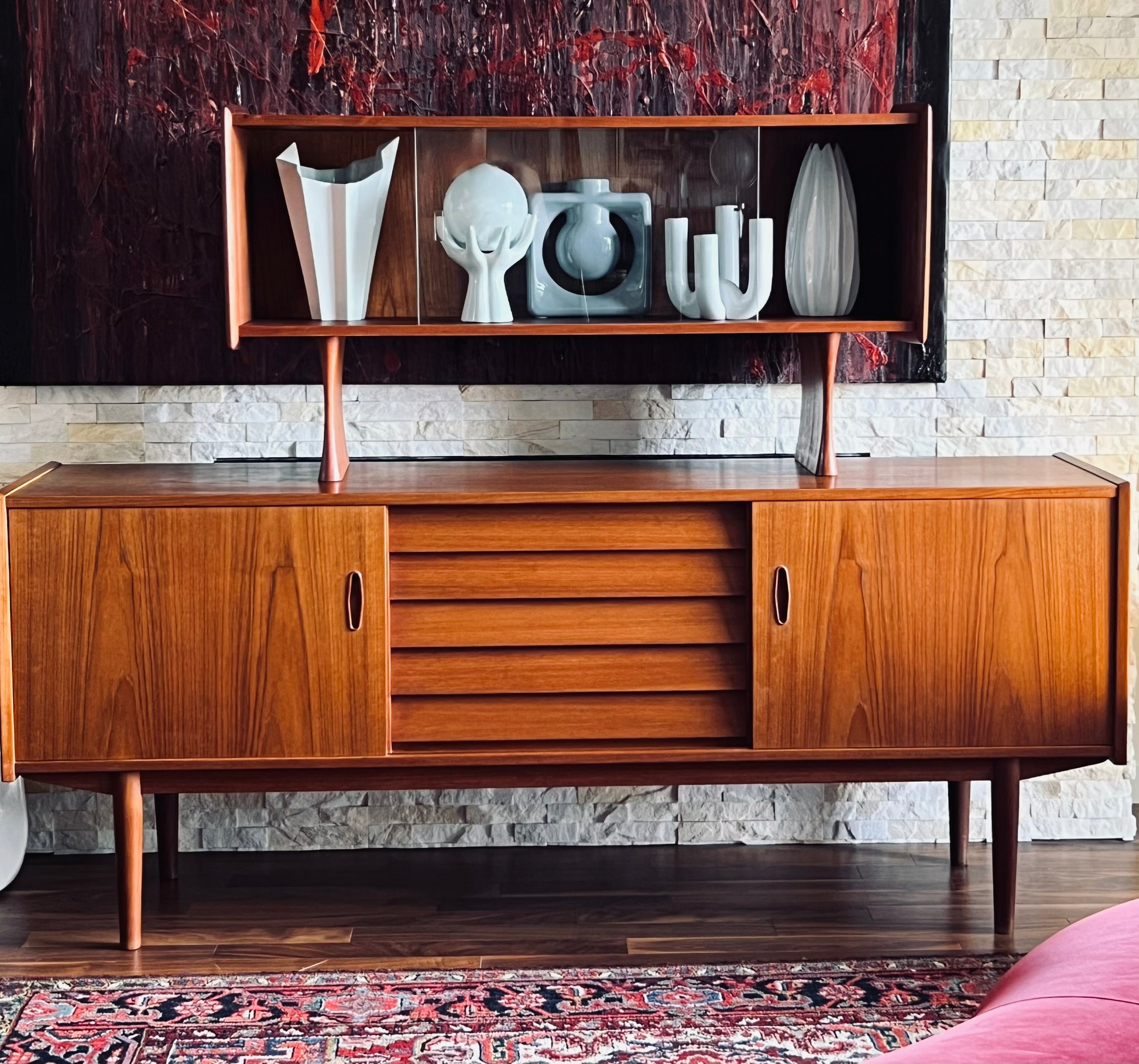 TEAK DISPLAY TOPPER w/ SLIDING GLASS DOORS for CREDENZA BUFFET SERVER SIDEBOARD