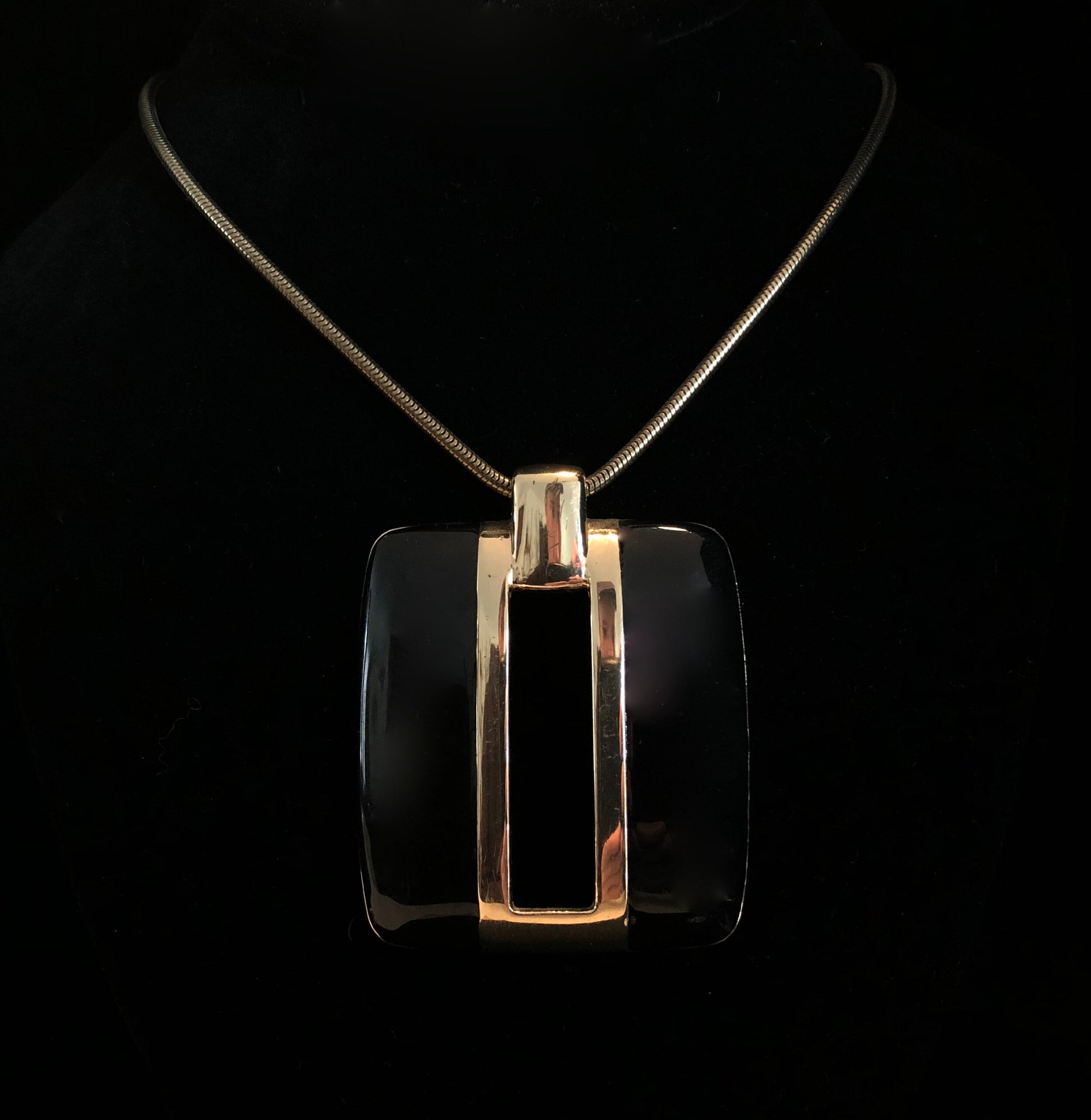 MONET 1980s SQUARE GOLDTONE & ENAMEL NECKLACE