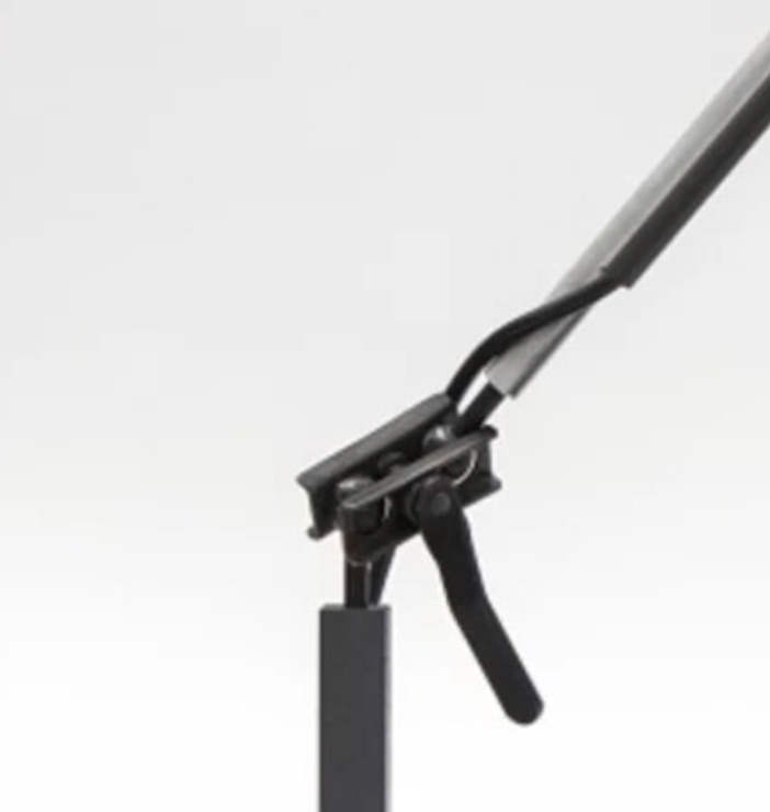 PAIR VERY RARE ARTEMIDE ITALY, ENZO MARI and G. FASSINA ADJUSTABLE AGGREGATO 1970s -80s TABLE LAMPS. These lamps flex from two joints into a variety of up and down positional options to direct light as needed and look incredibly sculptural while doing so. Base is steel/ multiple pivots/ metal lampshades. Remarkably cool. The switch is fixed on the base of the lamp.