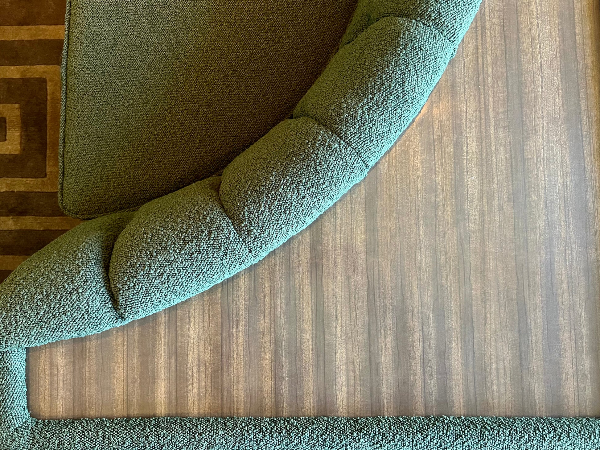 PROFESSIONALLY REUPHOLSTERED COUCH 1940s-1950s MID CENTURY UNIQUE BUILT-IN BARTOP OR LAMP TABLE SOFA