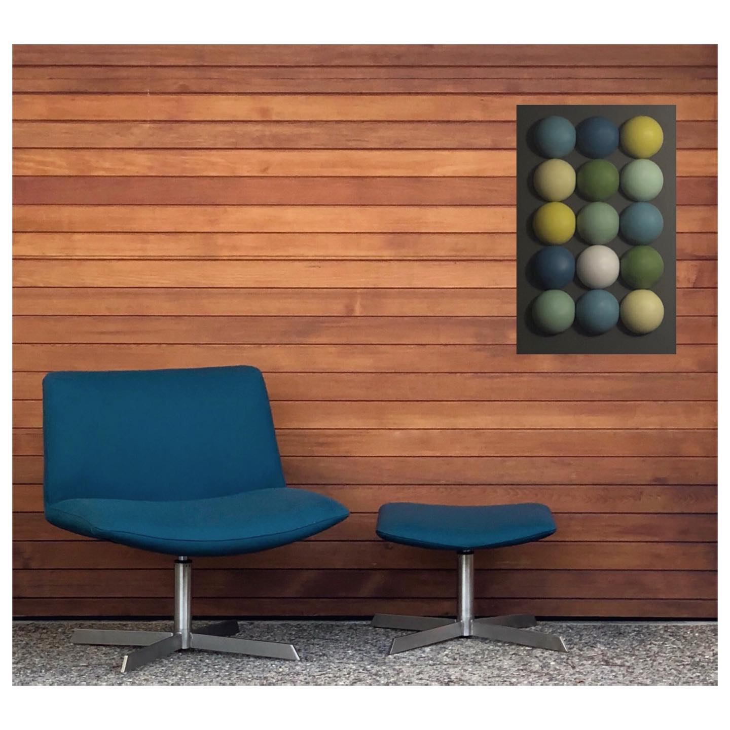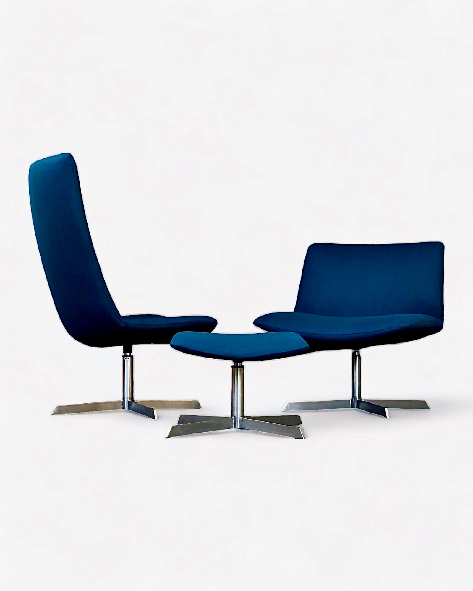 REUPHOLSTERED 3 PCE TALL BACK, LOW BACK SWIVEL CHAIRS w/ MATCHING FOOTSTOOL SET