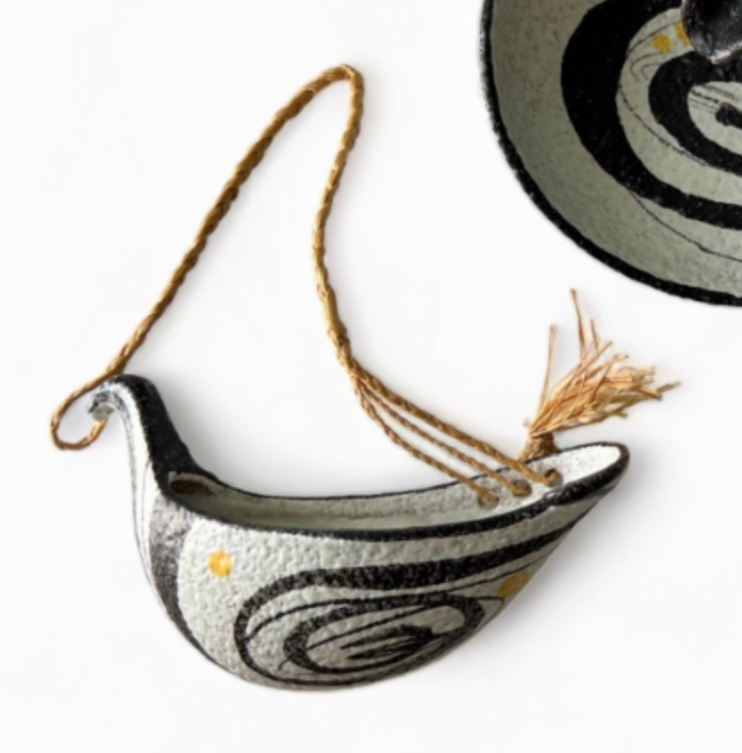 Mid-Century West German ceramic BIRD PLANTER/ WALL POCKET form by Ruscha Keramik in the 'Domino' decor.