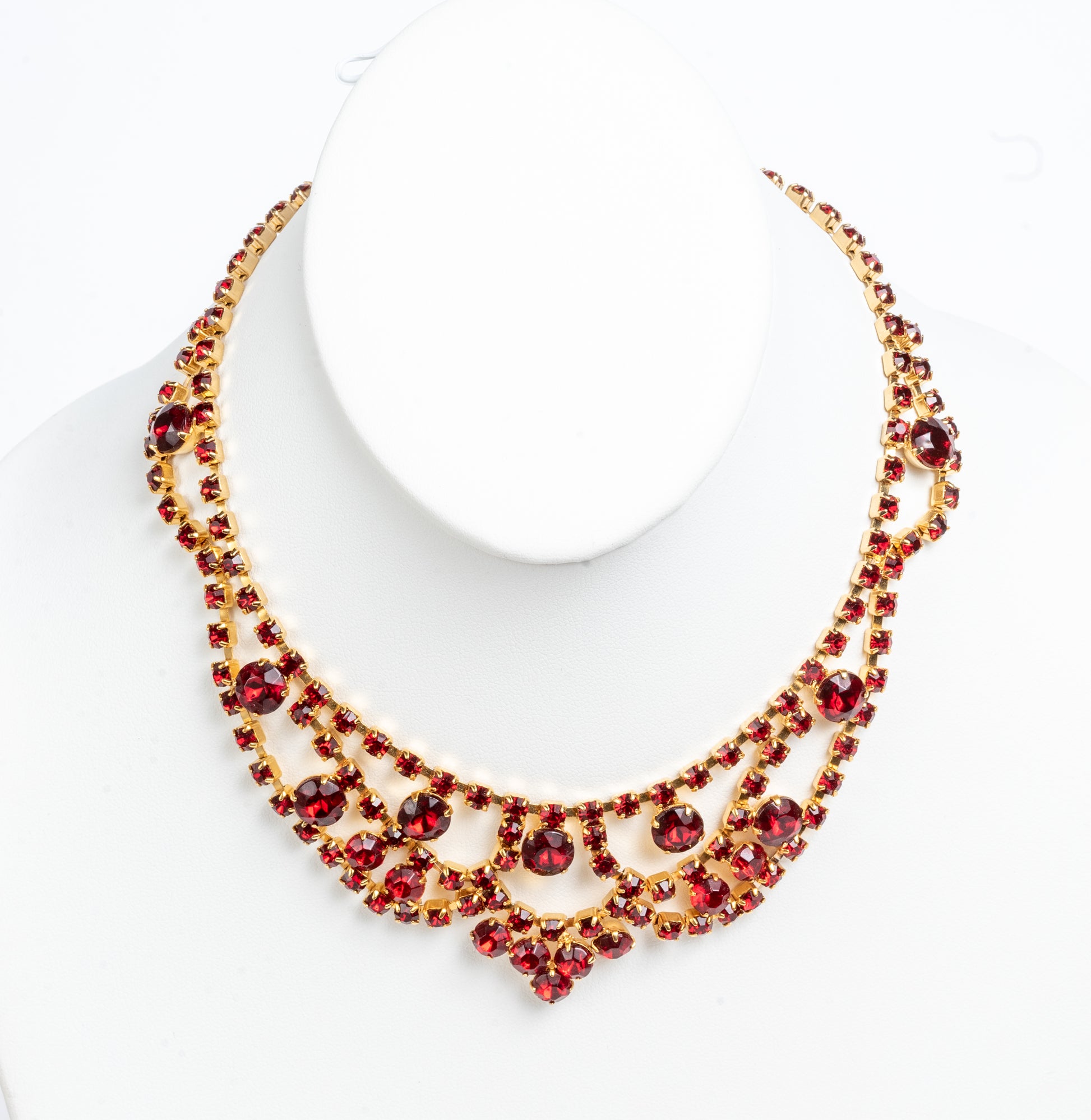 RICH SIAM RED STYLE RHINESTONE BIB NECKLACE