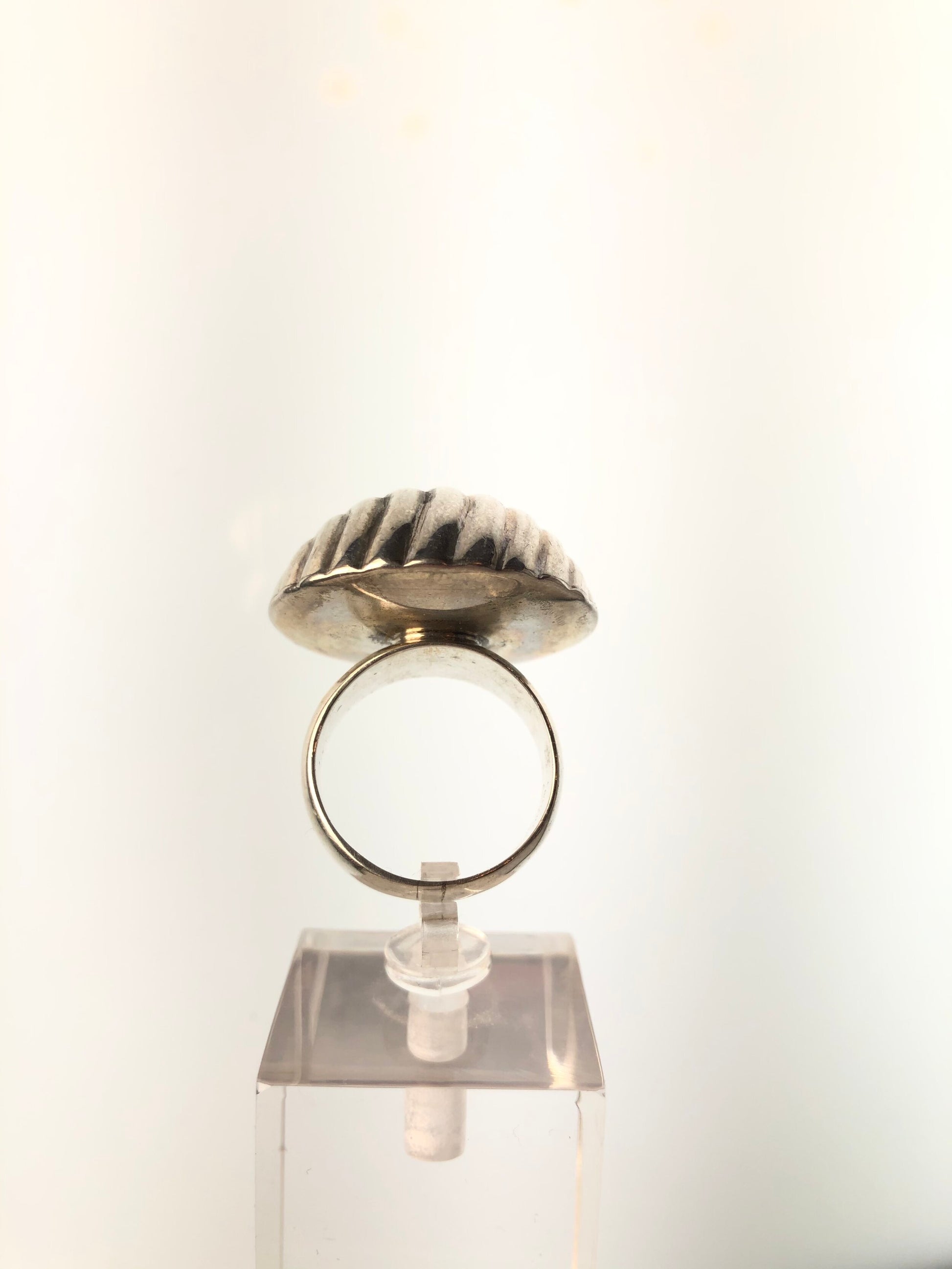 MODERNIST SIGNED STERLING TEXTURED SILVER DOME RING SIZE 7.5-8