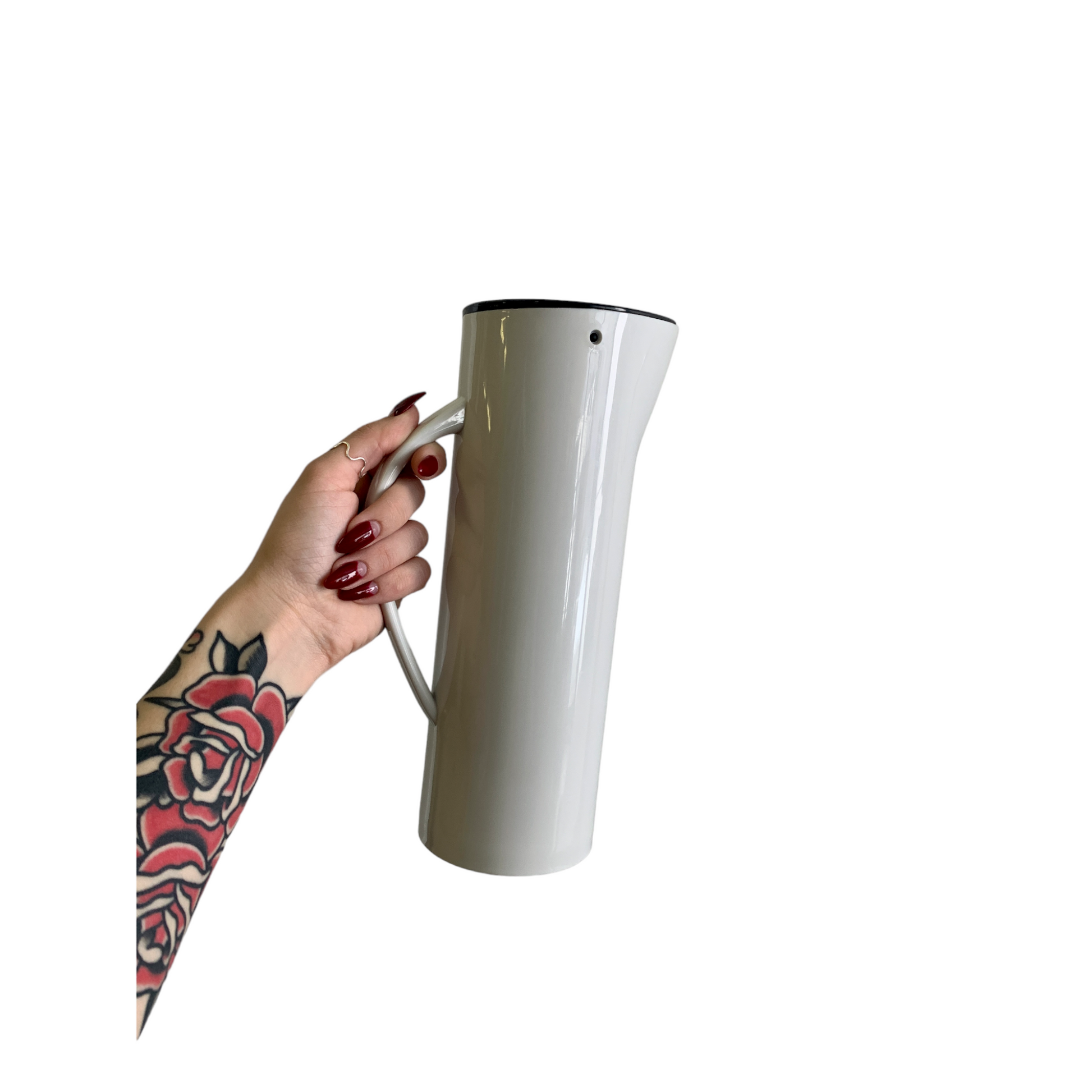 Manufactured by TAKEFUJI INDUSTRIAL Co., Japan. A masterpiece of modernist and minimalist design, bringing elegance to your table. With its basic yet functional white and black colors, this pitcher is a perfect addition to any setting.