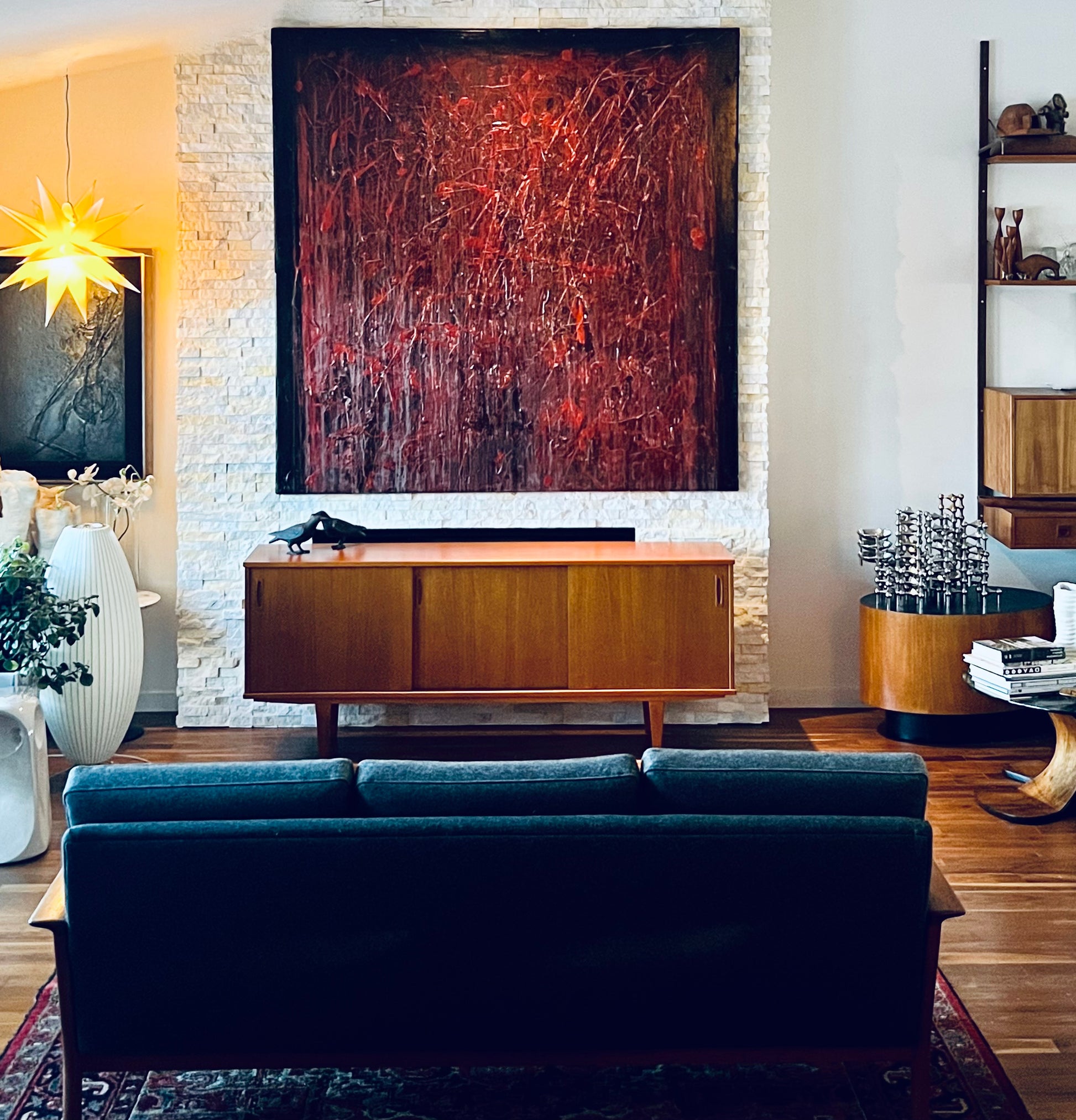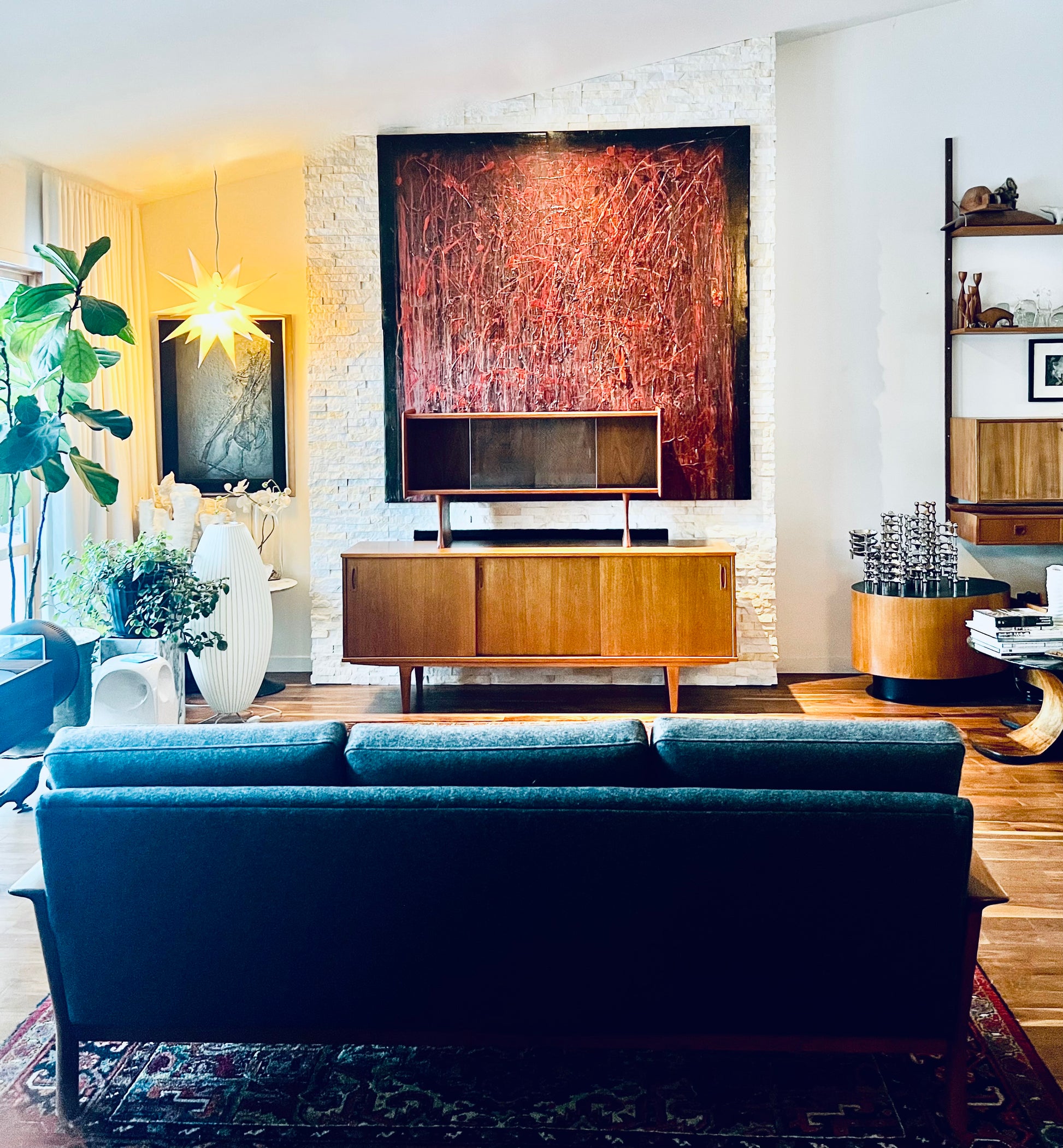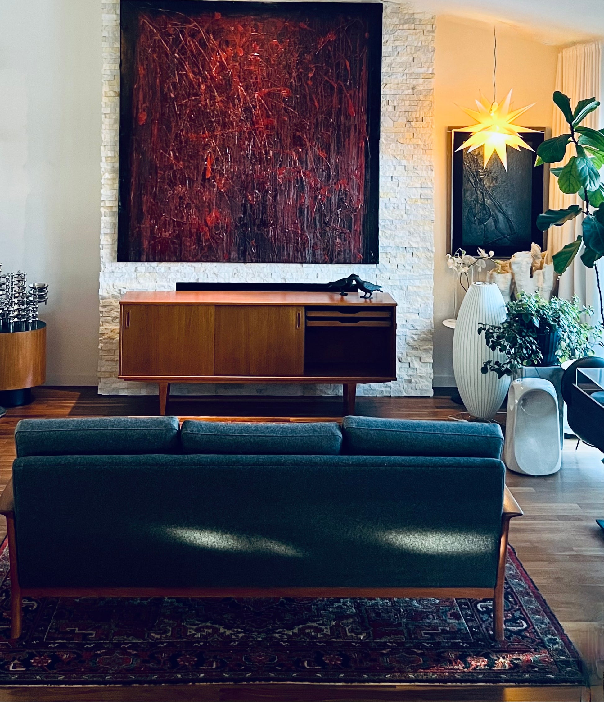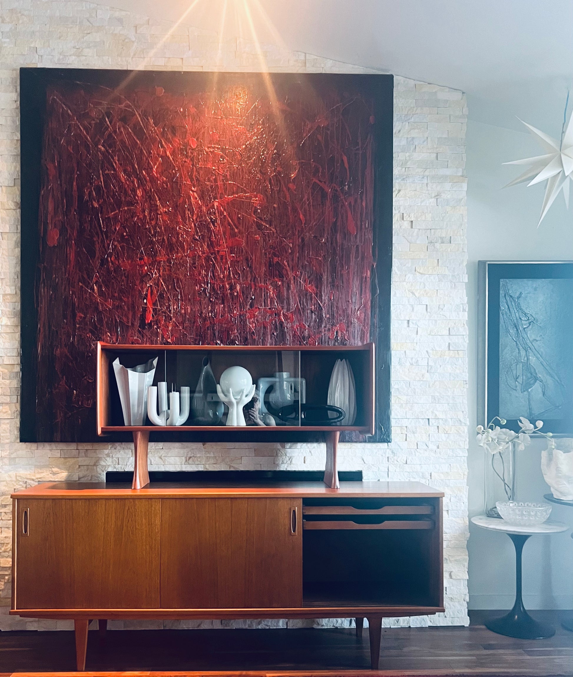 teak danish made credenza came from original owner. i had it completely professionally refinished . ready for 60+ more years of useful and handsome service . I think it was manufactured by the esteemed Danish company Dyrlund