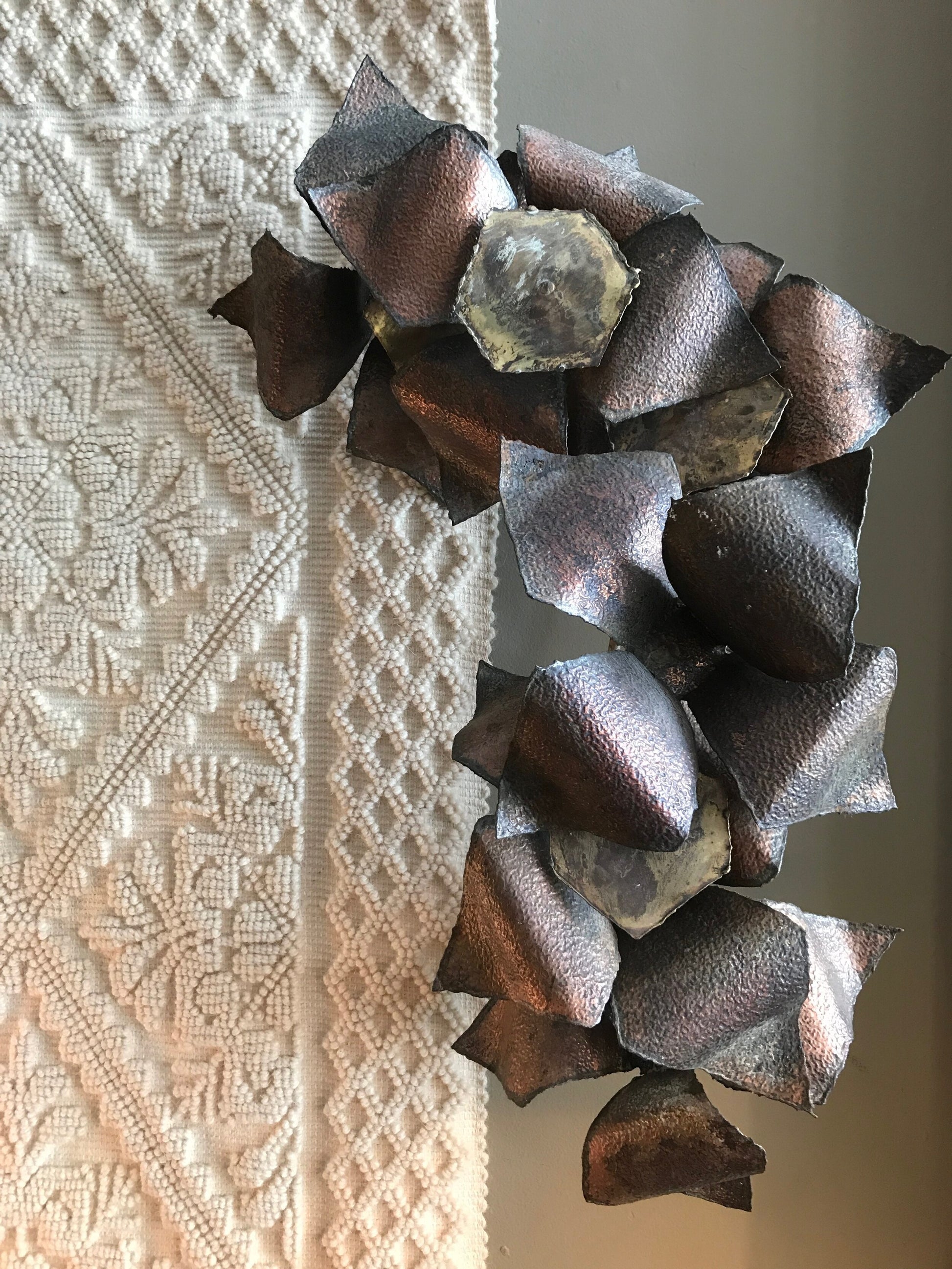 TORCH CUT BRUTALIST WALL ART BEAUTIFUL COLORS/PATINA INTERESTING ASYMETRICAL SHAPE