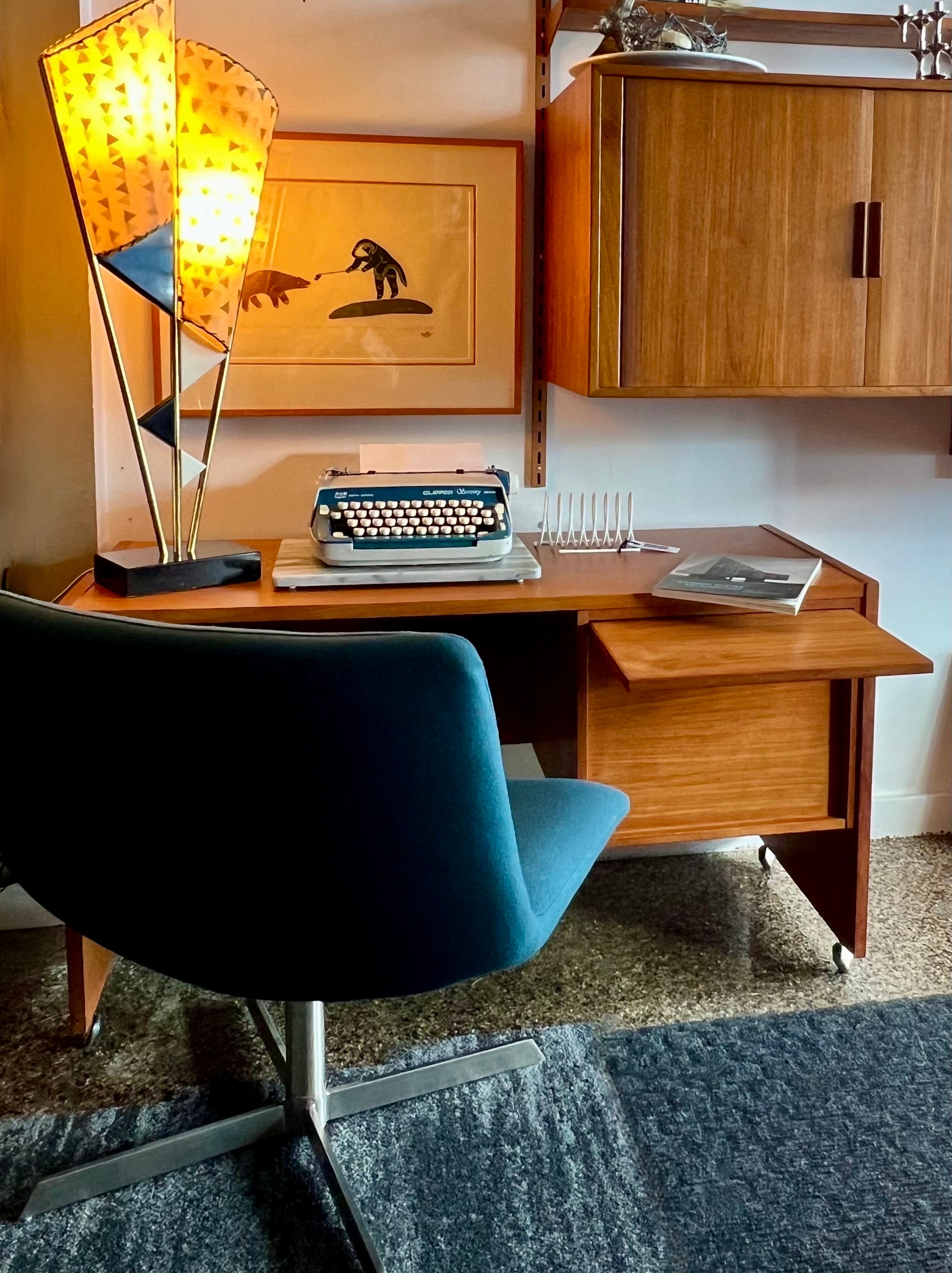 TRULY MAJESTIC, RARE MAJESTIC BRAND DOUBLE FIBREGLAS CONE ATOMIC STYLE TABLE LIGHT